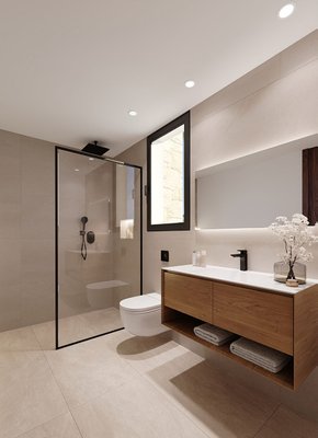 Zur hochwertigen Ausstattung der Villen gehören unter anderem ein Privatpool, ein Domotiksystem, Klimaanlage, Aluminiumfenster und -türen mit Doppelverglasung, elektrische Rollläden in den Schlafzimmern, Sicherheitstüren, Einbauschränke in den