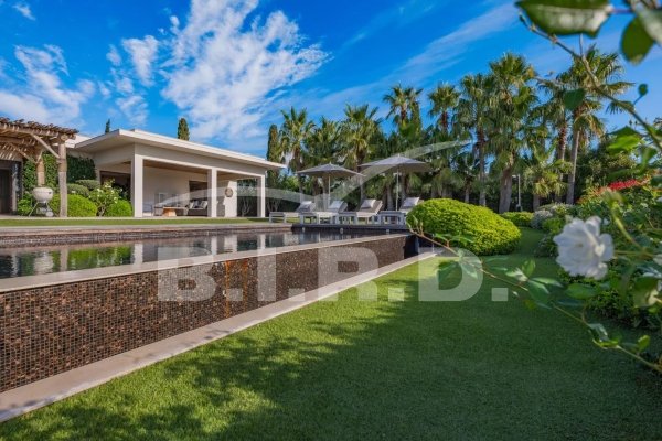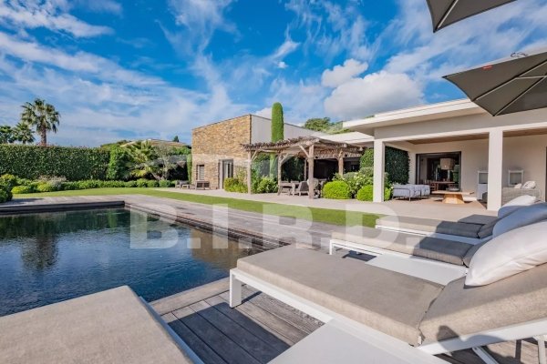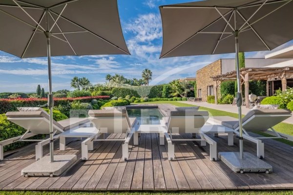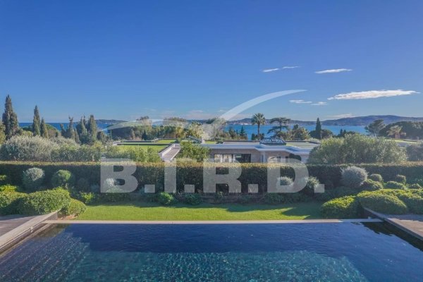 Diese außergewöhnliche moderne Villa befindet sich in einer der schönsten Gegenden am Golf von Saint Tropez. Ein dominantes, nach Süden ausgerichtetes Grundstück von 2.500 m² in einem gesicherten Gebiet, nur wenige Gehminuten vom Strand entfernt und