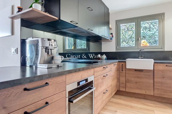 In the heart of the red rocks of the Estérel, only 150 m from the beaches and shops, this magnificent garden level in a small condominium of 4 lots offers an exceptional sea view. It consists of a bright living room with equipped American kitchen opening onto a terrace facing the sea, a scullery, a master suite with shower room, WC and dressing room, as well as two bedrooms with shared shower room opening onto a small garden. An independent sanitary facilities, a landscaped terrace, a cellar and two secure private parking spaces complete this rare property. An idyllic setting between sea and nature, ideal for lovers of the Côte d'Azur!
