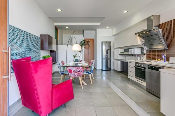 Vom Essbereich aus betreten Sie ein geräumiges Wohnzimmer, das zu Balkonen und Verandas mit faszinierender Aussicht führt.