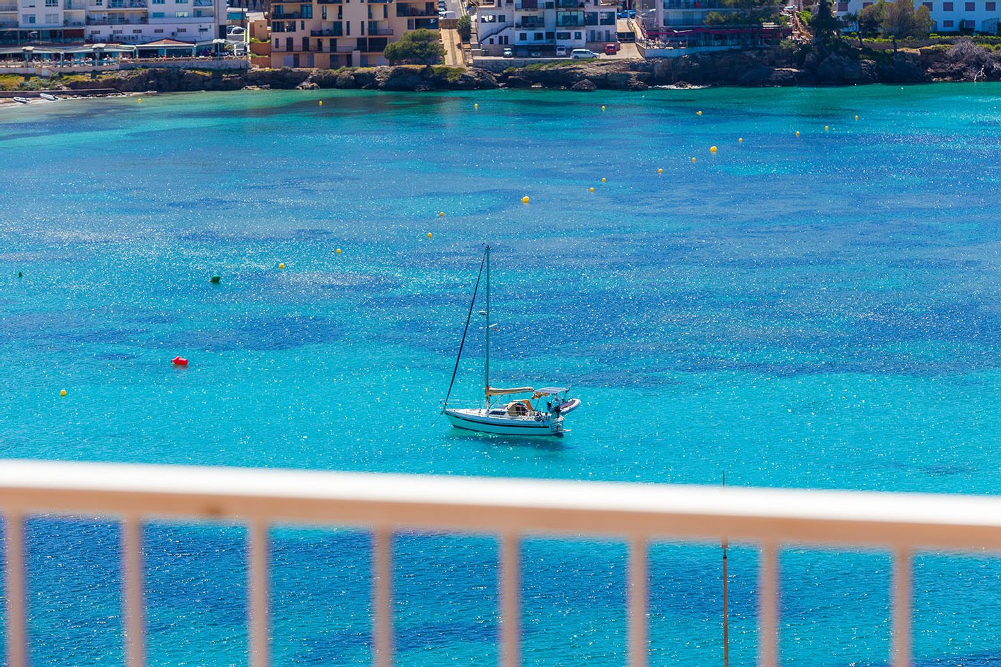 Dieses südorientierte Apartment mit wunderbarem Blick über die Bucht von Santa Ponsa befindet sich in der 7. Etage eines gepflegten Apartmentgebäudes in 2. Meereslinie, nur ein paar Schritte vom Meer entfernt. Das Ortszentrum mit einem umfangreichen