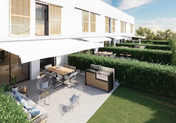 Diese modernen Erdgeschoss-Wohnungen verfügen über eine konstruierte Fläche von 97 m² - 137 m² (verschiedene Modelle, inklusive Terrassen) mit