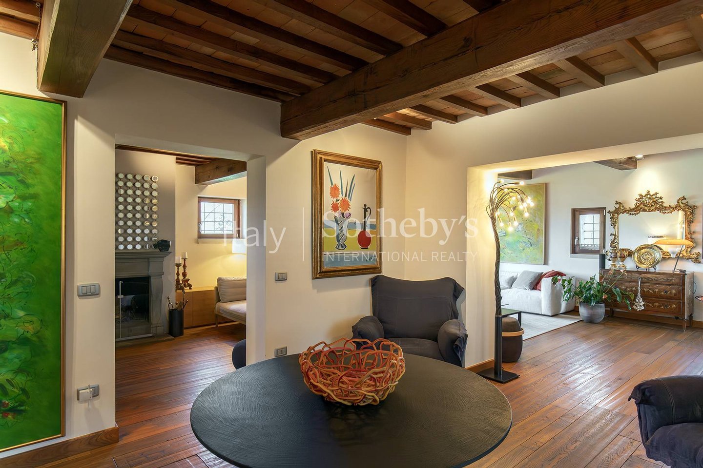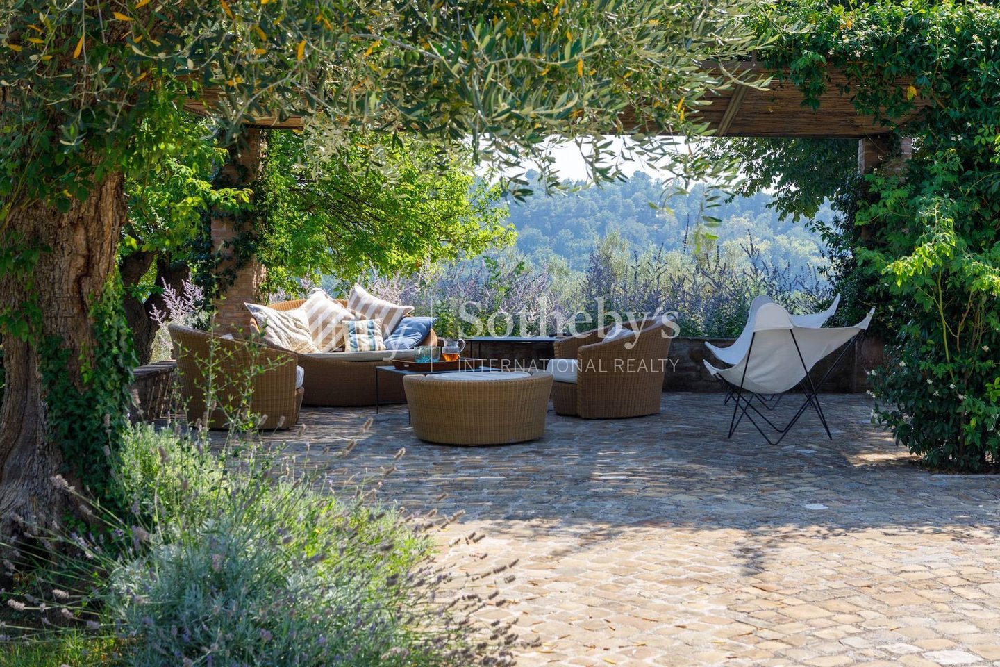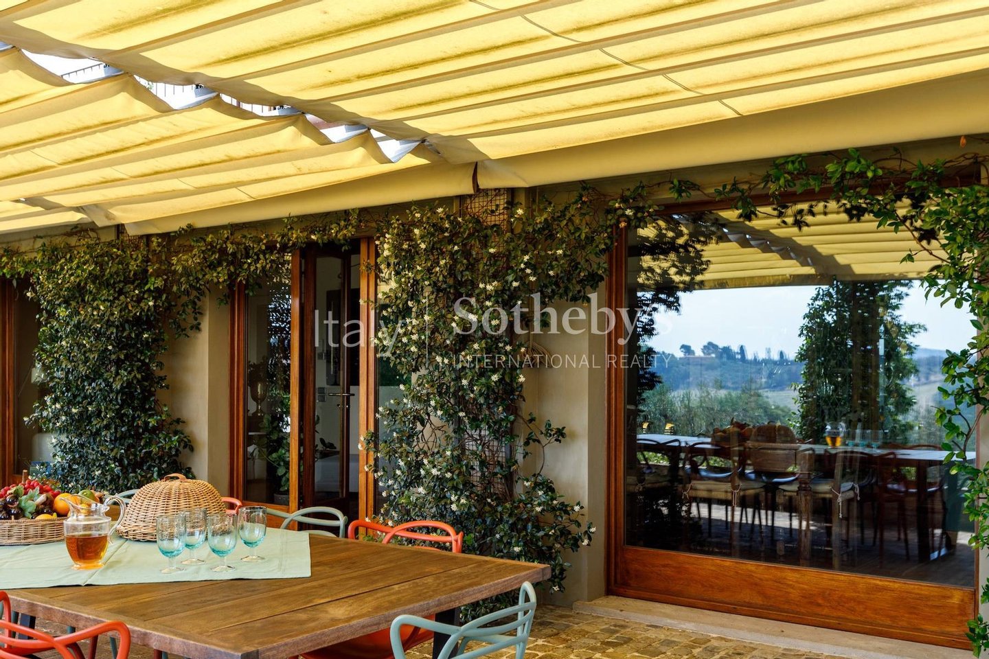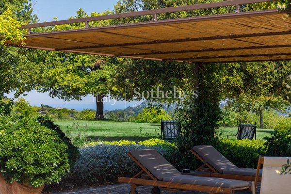 Ein Innenhof aus Cotto trennt die Villa von einem unabhängigen Cottage, das eine großzügige Suite mit eigenem Bad sowie einen Abstellraum umfasst, der in ein zusätzliches Schlafzimmer umgewandelt werden kann. Neben dem Cottage erstreckt sich eine mit Glyzinien bewachsene Pergola - ein idyllischer Rückzugsort.