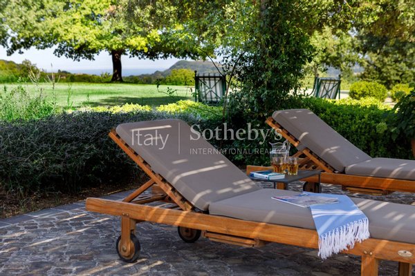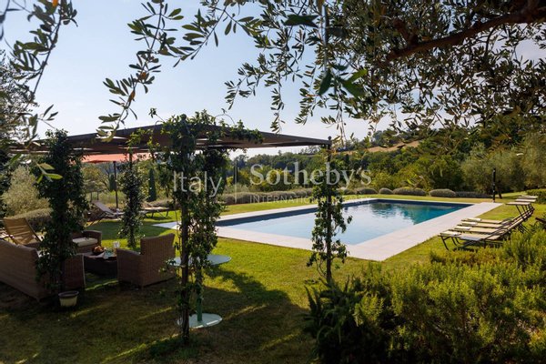 Das Anwesen erstreckt sich über 7 Hektar eingezäuntes Land, das ein Waldgebiet, einen gepflegten Garten, einen außergewöhnlichen Olivenhain sowie einen nach Süden ausgerichteten 16 x 6 Meter großen Pool auf einer weitläufigen Terrasse unterhalb der Villa umfasst. Abseits des Blickfelds befindet sich ein großer Geräteschuppen für Gartenausrüstung.