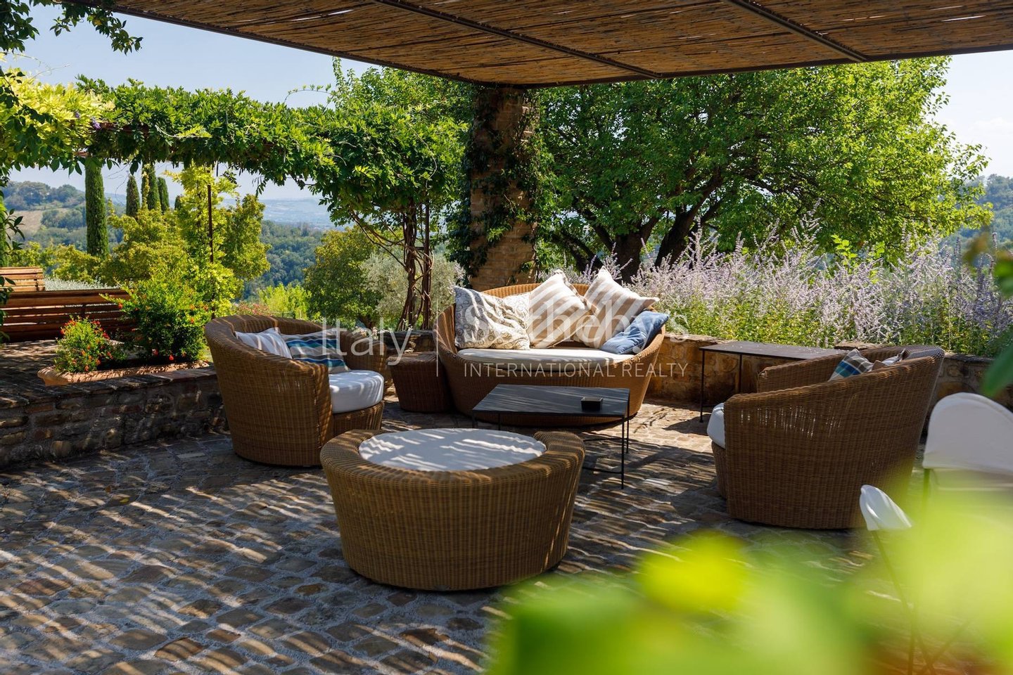 Im Herzen des Naturparks Monte San Bartolo, nur wenige Kilometer vom Strand entfernt, liegt Villa Aurora, eine elegante und komfortable Residenz mit atemberaubenden Ausblicken von den sanften Hügeln bis hin zum Meer.Die im Jahr 2005 renovierte Villa