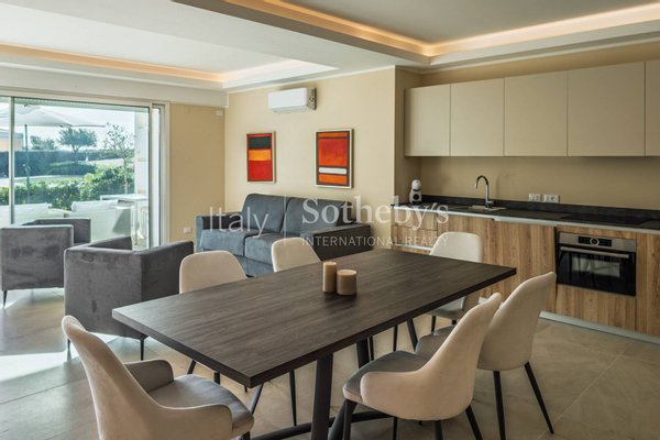 Diese elegante Wohnung, die sich direkt am Meer befindet, liegt nur 30 Minuten von Cagliari entfernt an der südöstlichen Küste Sardiniens, innerhalb einer neuen Wohnanlage mit Blick auf den herrlichen goldenen Strand von Geremeas. Dank ihrer hervorragende