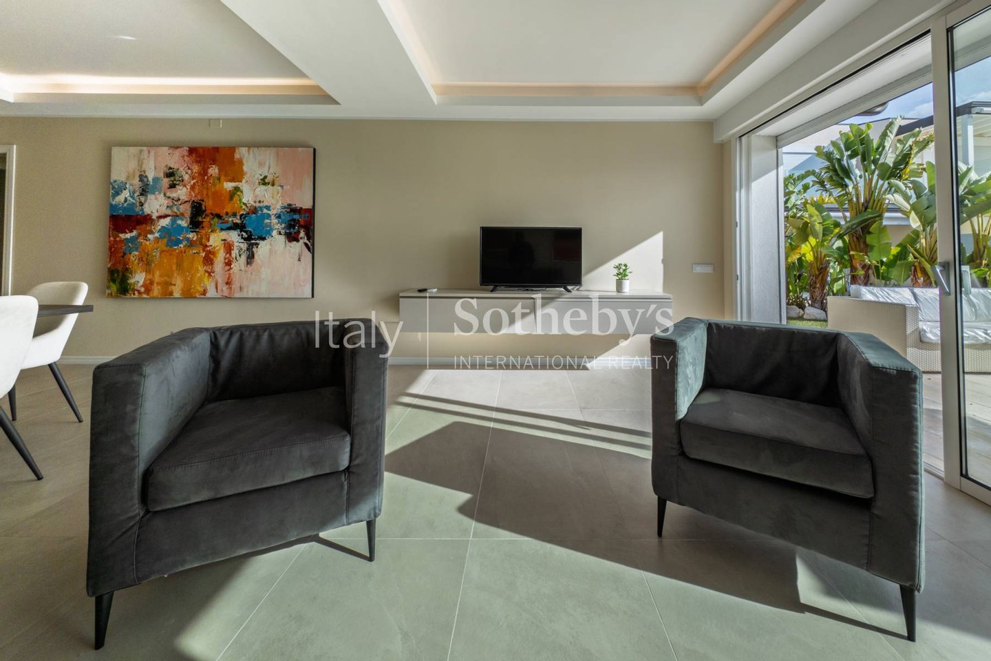 Die Immobilie verfügt über einen separaten Eingang und ist in einem modernen und funktionalen Stil eingerichtet. Der Wohnbereich ist großzügig und lichtdurchflutet und umfasst ein Wohnzimmer, einen Essbereich und eine offene Küche, während der Schlafbereich zwei Schlafzimmer bietet, jedes mit eigenem Bad. Zu den Annehmlichkeiten gehören eine Klimaanlage, eine Photovoltaikanlage und ein eigener Parkplatz.