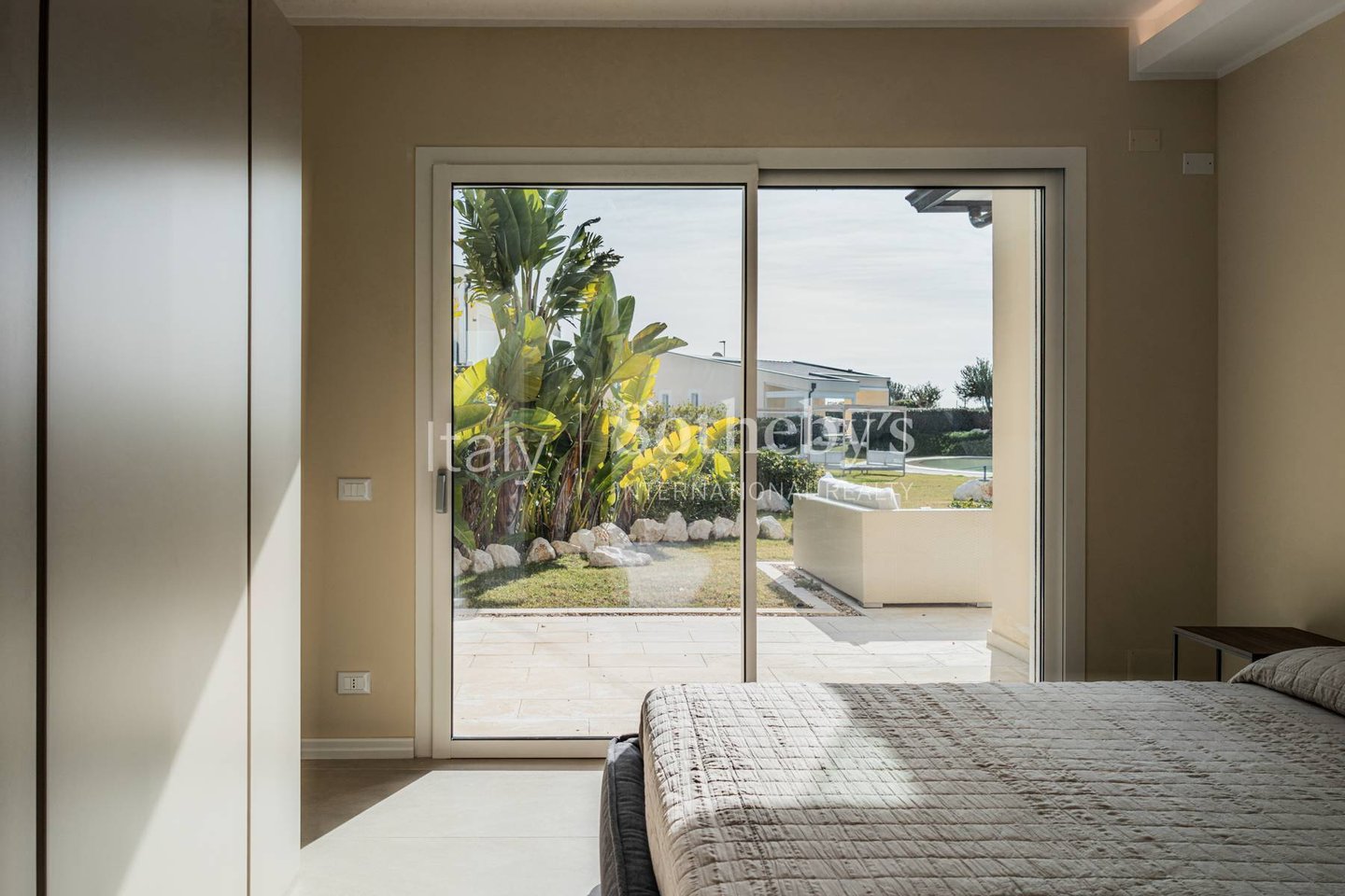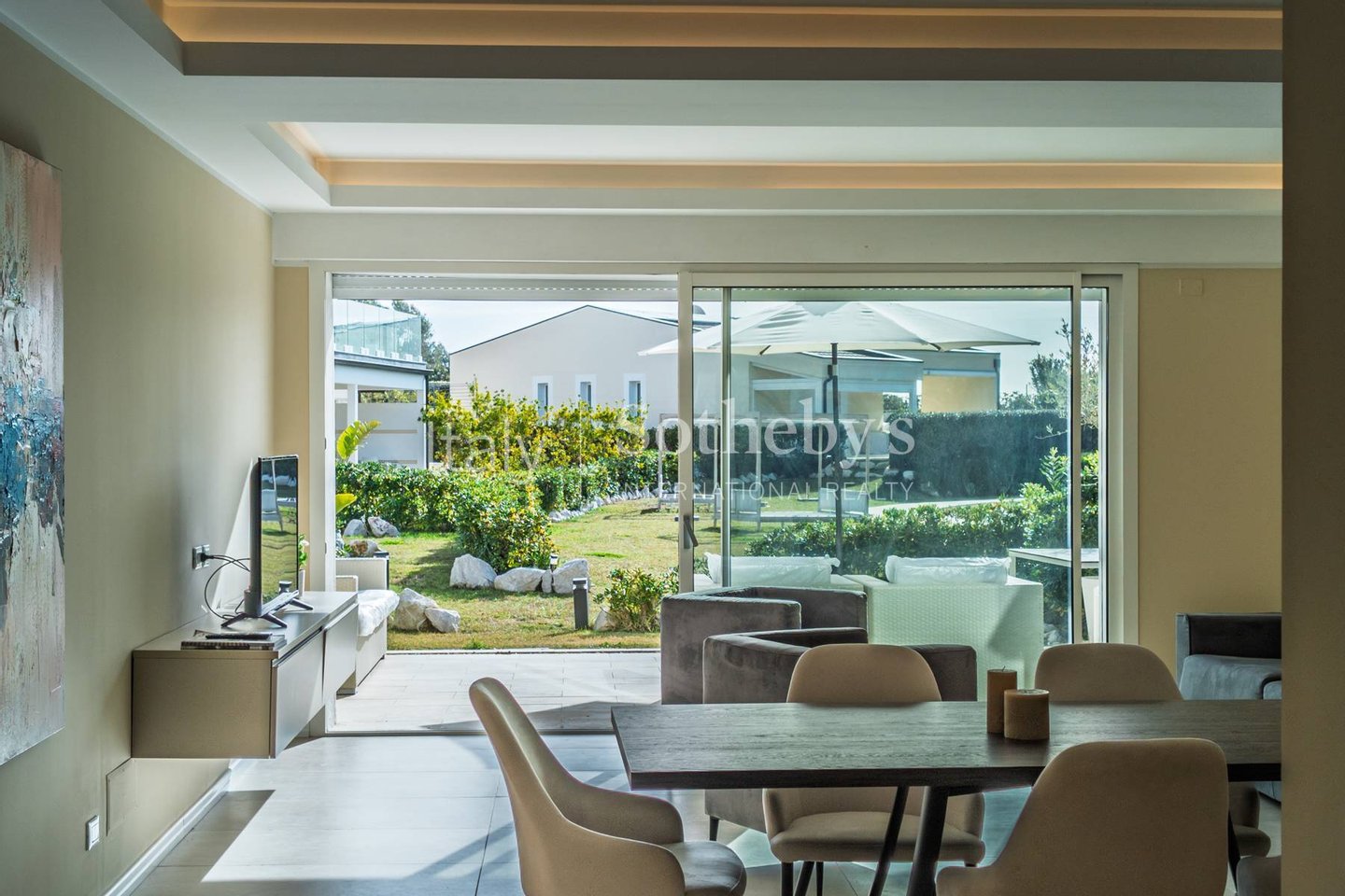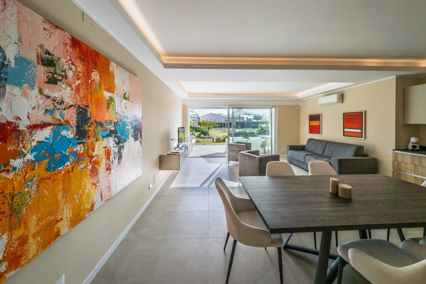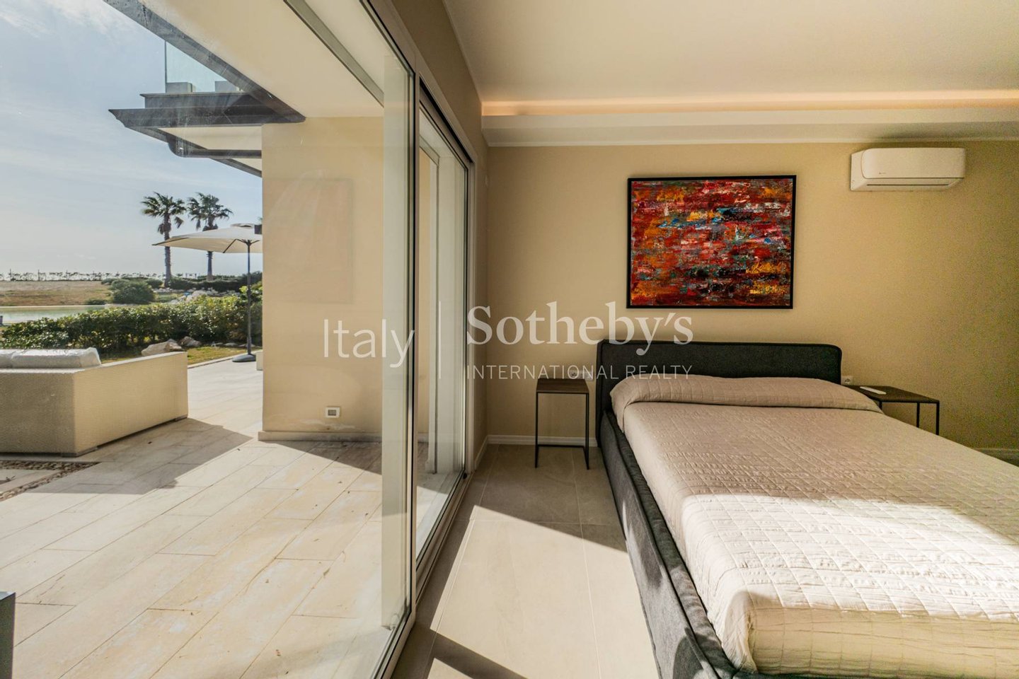 Diese elegante Wohnung, die sich direkt am Meer befindet, liegt nur 30 Minuten von Cagliari entfernt an der südöstlichen Küste Sardiniens, innerhalb einer neuen Wohnanlage mit Blick auf den herrlichen goldenen Strand von Geremeas. Dank ihrer hervorragende