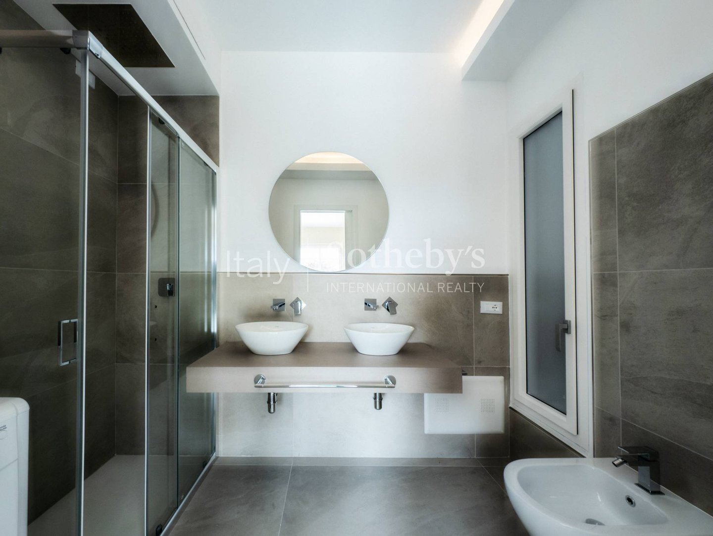 Die Immobilie verfügt über einen separaten Eingang und ist in einem modernen und funktionalen Stil eingerichtet. Der Wohnbereich ist großzügig und lichtdurchflutet und umfasst ein Wohnzimmer, einen Essbereich und eine offene Küche, während der Schlafbereich zwei Schlafzimmer bietet, jedes mit eigenem Bad. Zu den Annehmlichkeiten gehören eine Klimaanlage, eine Photovoltaikanlage und ein eigener Parkplatz.