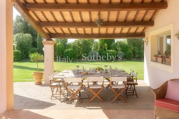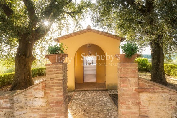 The villa's original construction dates back to the 15th century and has been beautifully restored, preserving its historic features such as the church walls and arches that form the living and dining areas. The addition of a private chapel and meticulous attention to detail make this property truly unique.