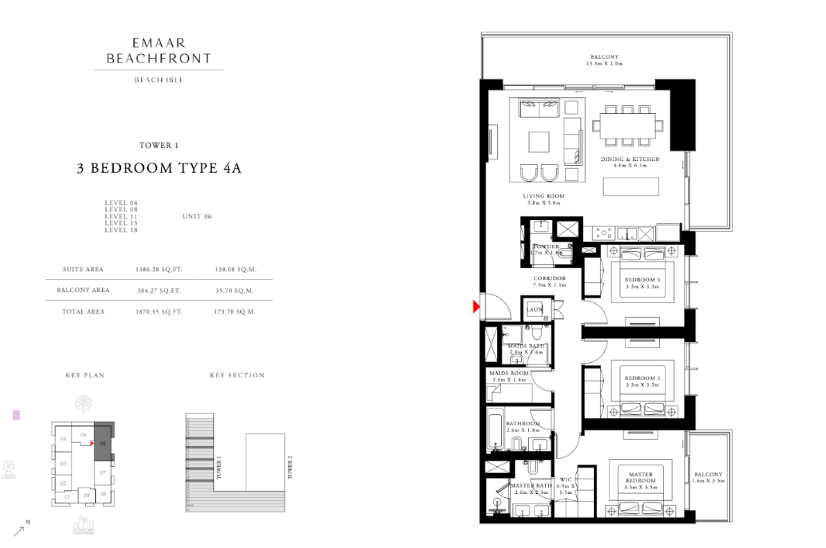 Herzlich willkommen in diesem luxuriösen Apartment mit einem großzügigen Ess- und Wohnbereich. Genießen Sie die geräumigen 3 Schlafzimmer sowie das Zimmer für das Personal mit eigenem Badezimmer. Die Wohnung ist komplett möbliert und verfügt über hochwertige Geräte, die Ihren Lebensstil bereichern werden. Tauchen Sie ein in die Atmosphäre von Luxus und Komfort in diesem wunderschönen Zuhause. Willkommen in Ihrem neuen Refugium.