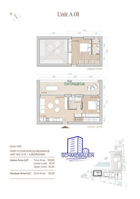Schreibtischplatten in der oberen Ebene der Duplex-Einheiten