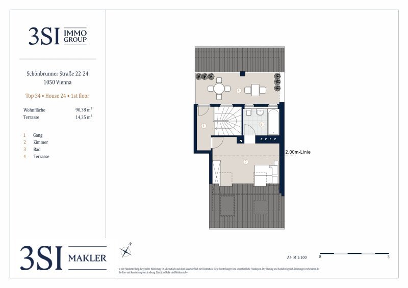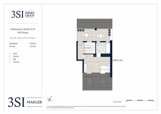 Diese charmante Dachgeschoss-Maisonette bietet auf zwei Ebenen ein modernes und komfortables Wohnambiente. Mit insgesamt 3 Zimmern ist sie ideal für Paare, kleine Familien oder als stilvolle Stadtwohnung. Die untere Ebene empfängt Sie mit einer großzügigen Wohnküche, hier können Sie gesellige Abende mit Freunden verbringen oder entspannte Kochmomente genießen. Das Schlafzimmer bietet ausreichend Platz für Ihre persönliche Rückzugsoase. Ein praktischer Vorraum, ein Abstellraum als zusätzlichen Stauraum und das separate WC runden das Raumangebot ab. Die obere Ebene besticht durch ein geräumiges Schlafzimmer und ein modern ausgestattetes Tageslichtbad und sorgen für ein angenehmes Wohlfühlambiente. Ein besonderes Highlight dieser Maisonette ist die 13 m² große Terrasse. Genießen Sie den schönen Blick und die ruhige Atmosphäre, während Sie die frische Luft und die Sonne auf Ihrer eigenen kleinen Oase erleben.