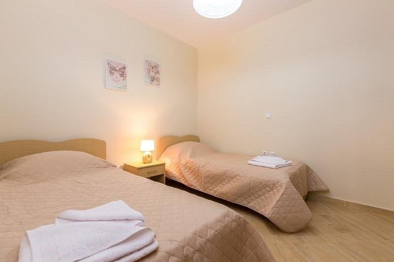 Im Obergeschoss genießen Sie die sanfte Meeresbrise und den faszinierenden Blick auf die glitzernde Ägäis – eine schöne Erinnerung an Ihre Nähe zur Küste. Nur 75 Meter vom Wasser entfernt, ist dieses Anwesen ideal, um den Strand zu erreichen. Ein Gemeinschaftspool sorgt für zusätzliche Entspannung und Abkühlung an warmen Sommertagen.
