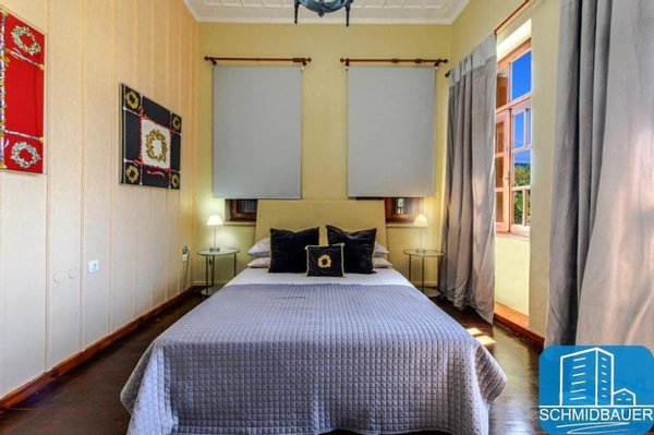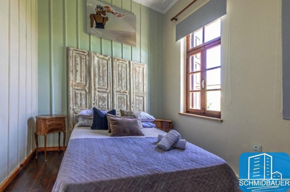 Beim Betreten durch die mittlere Tür und direkt in den Flur finden wir links das Wohnzimmer, rechts die Küche und zwei WCs. Eine Innentreppe führt uns in den ersten Stock, der von zwei Schlafzimmern mit en-suite Badezimmern eingenommen wird. Das erste Schlafzimmer ist mit 5 großen Fenstern ausgestattet, die viel Sonnenschein ermöglichen, während das zweite zwei Fenster hat. Im ersten Stock gibt es auch einen Innenhof und einen Abstellraum. Von allen Fenstern im ersten Stock bietet das Anwesen einen herrlichen Blick über die Stadt bis hin zum Meer.