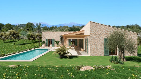 Das Grundstück liegt ca. 2,5 km vom Ort Porreres entfernt. Das Grundstück wird mit einer aktuellen Baugenehmigung für den Bau einer Finca mit Pool verkauft. Geplant ist eine Finca mit einer bebauten Fläche von ca. 288 qm und einer Wohnfläche von 224 qm, ebenerdig, zuzüglich den Bau eines Swimming Pools von 35 qm. Insgesamt drei Schlafzimmer und 3 Bäder, Wohn-/ Esszimmer mit offener Küche, ein Hauswirtschaftsraum, ein Eingangsbereich, sowie ein Technikraum und ein Carport.