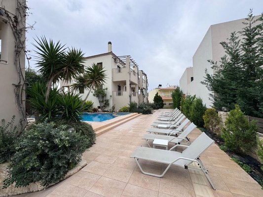 Vier Maisonette-Wohnungen in Skaleta, Rethymno, zu verkaufen. Die Anlage besteht aus vier freistehenden Häusern mit einer Gesamtfläche von 624 m² auf einem 850 m² großen Grundstück. Zur Anlage gehören ein Gemeinschaftspool, eine gepflasterte Terrasse und ein Garten.