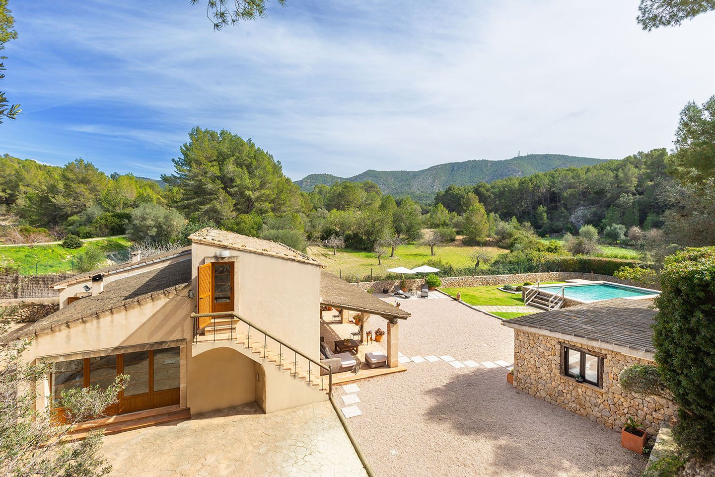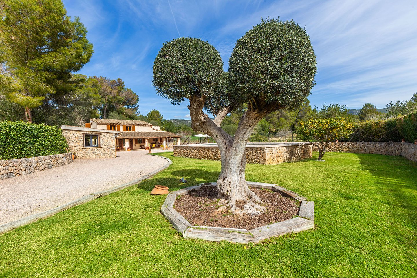 Nur wenige Autominuten von den Küstenorten Santa Ponsa und Paguera entfernt liegt diese wunderschöne Finca auf einem südorientierten, idyllischen Grundstück fußläufig zum Ortszentrum. Eine kleine Oase fern ab vom Trubel und dennoch mit bester