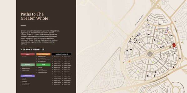 Die ruhige und familienfreundliche Umgebung des Stadtteils Jumeirah Village Circle in Dubai bietet zahlreiche Parks, Spielplätze und Grünflächen, die ideal für Freizeitaktivitäten im Freien sind. Die zentrale Lage sorgt für eine gute Erreichbarkeit von Sporteinrichtungen, Pools und Joggingstrecken, die ein aktives und gesundes Leben fördern.