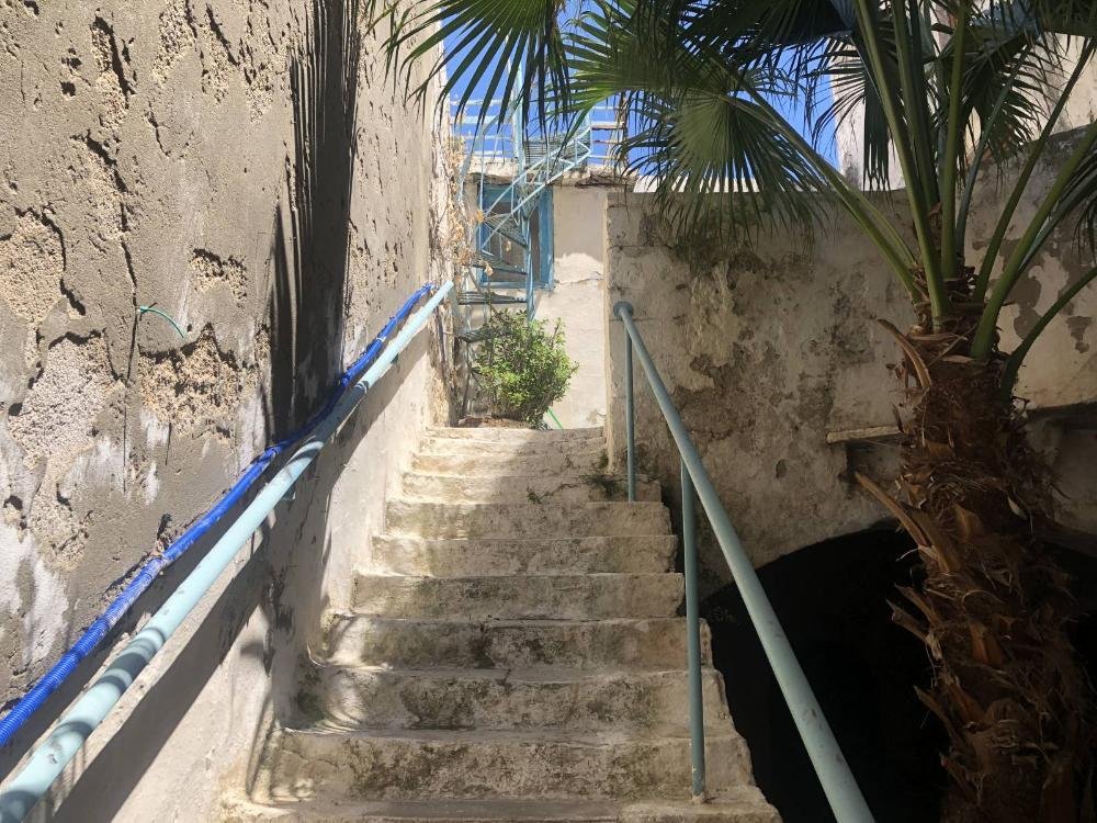 Das Erdgeschoss besteht aus einem 60 m² großen Raum, der früher ein Geschäft war, einem 40 m² großen Lagerraum, einem Innenhof und einer Außentreppe aus Stein, die zu einer großen Veranda führt.