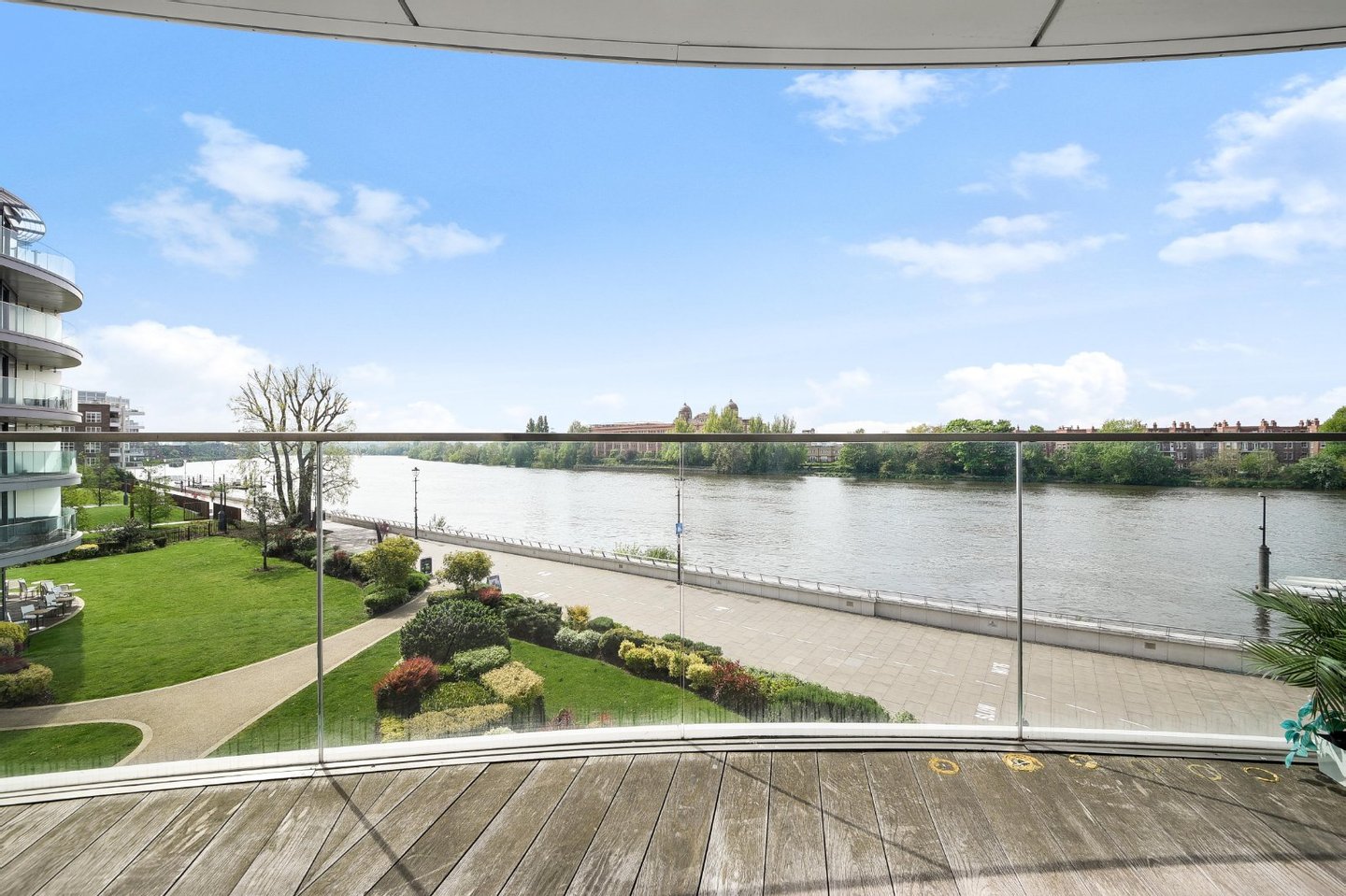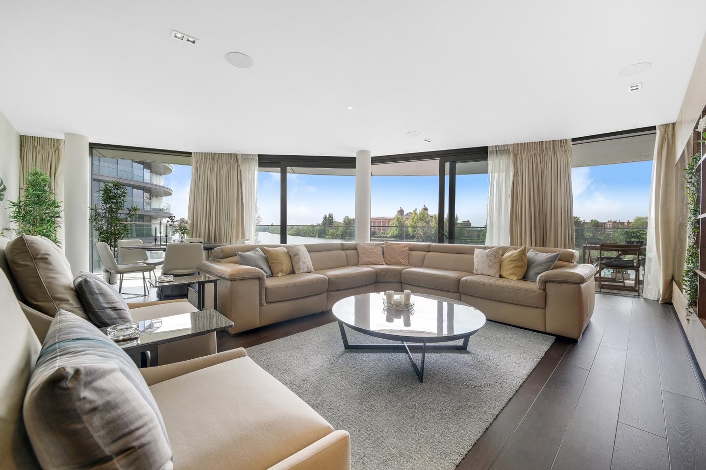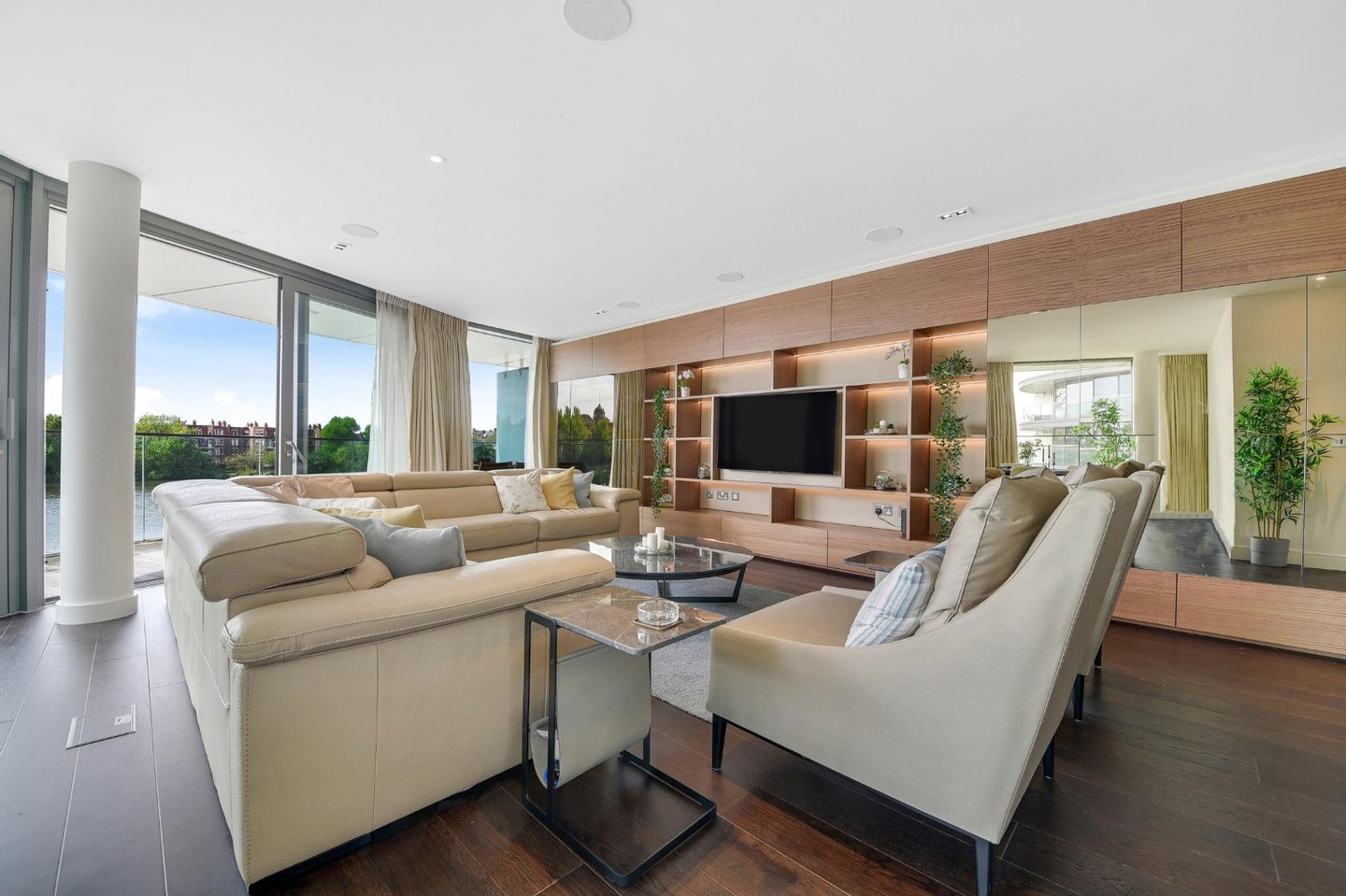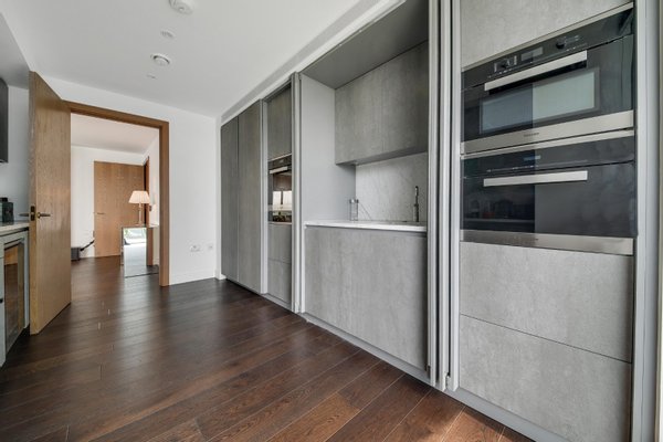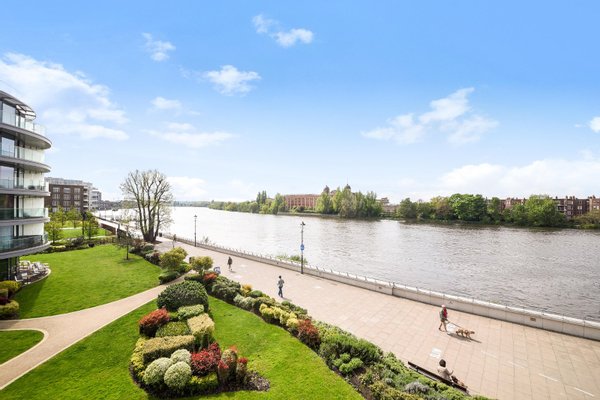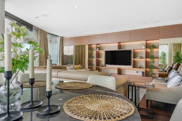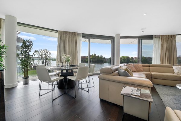 Drei Schlafzimmer mit eigenem Bad | Vier Badezimmer | Umlaufende Terrasse | Fünf-Sterne-Annehmlichkeiten | Aufzug | Tiefgarage | Concierge | Dieses exquisite Apartment mit drei Schlafzimmern und vier Bädern befindet sich am ruhigen Ufer der Themse