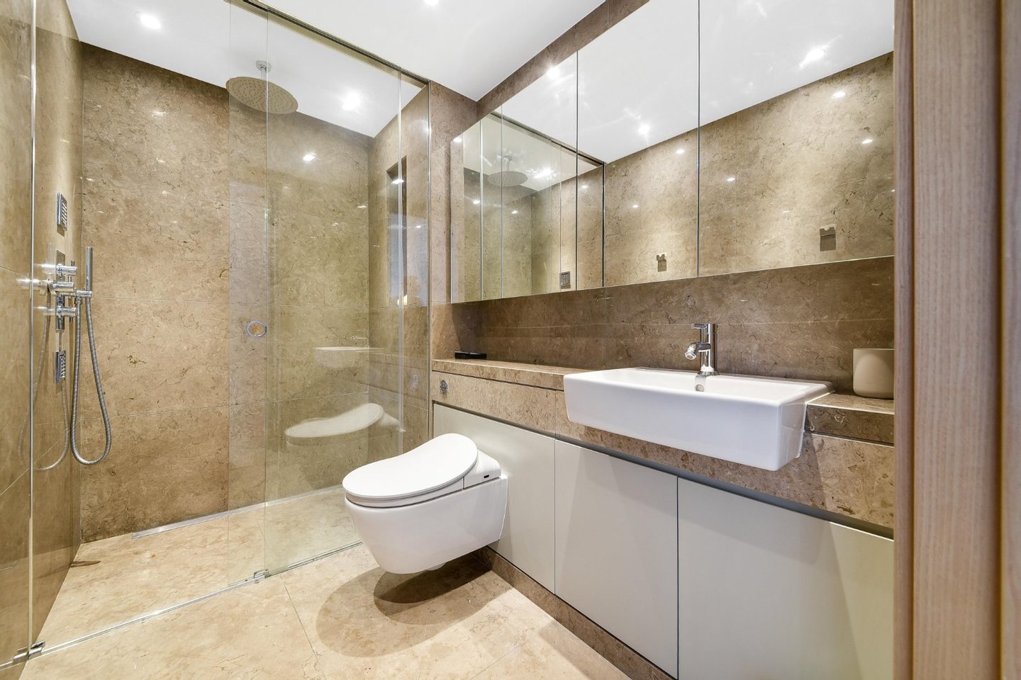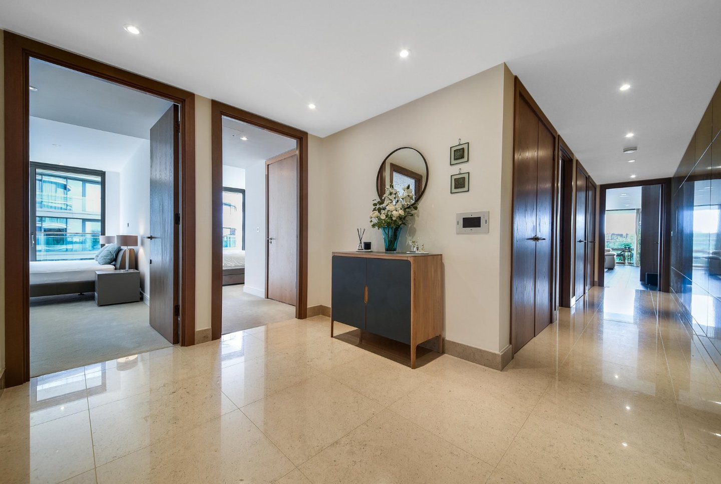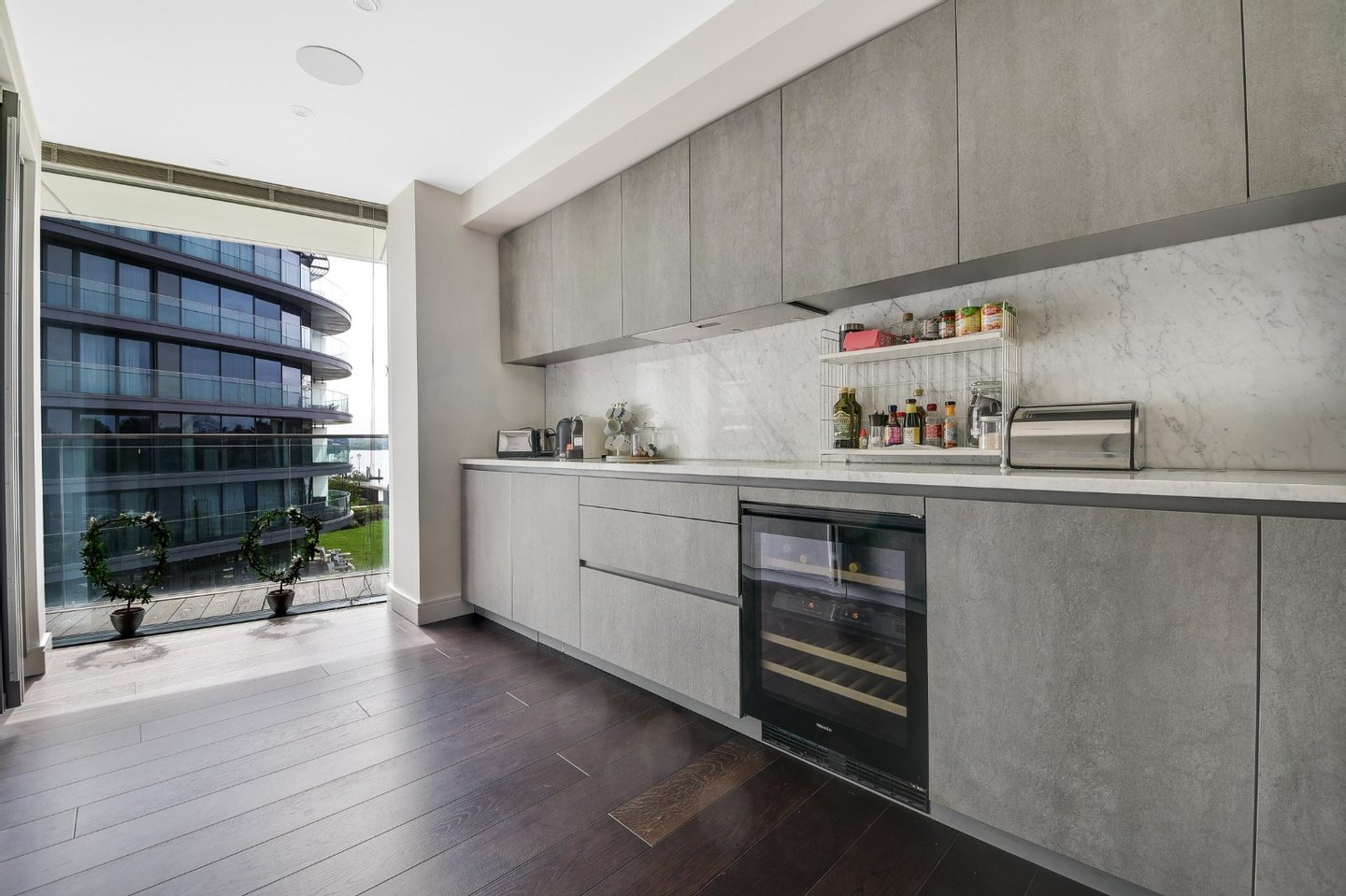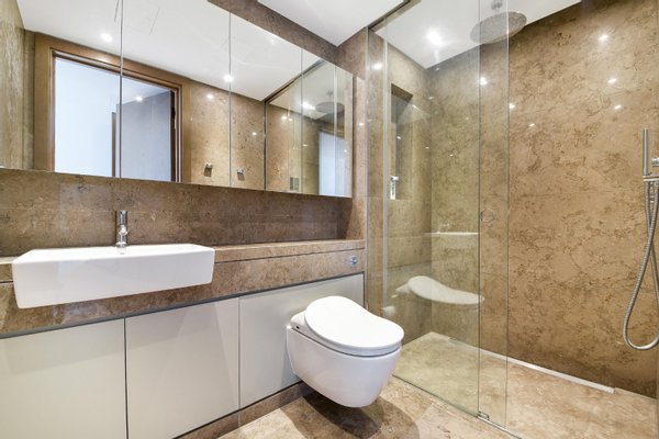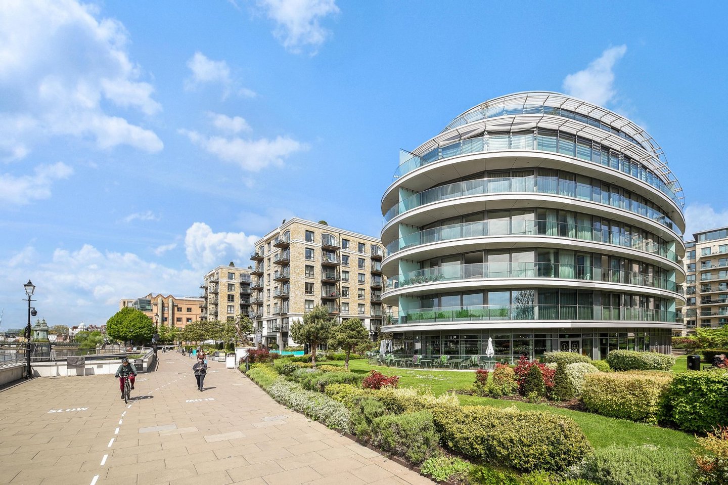 Drei Schlafzimmer mit eigenem Bad | Vier Badezimmer | Umlaufende Terrasse | Fünf-Sterne-Annehmlichkeiten | Aufzug | Tiefgarage | Concierge | Dieses exquisite Apartment mit drei Schlafzimmern und vier Bädern befindet sich am ruhigen Ufer der Themse