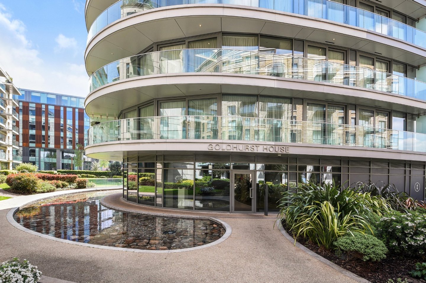 Drei Schlafzimmer mit eigenem Bad | Vier Badezimmer | Umlaufende Terrasse | Fünf-Sterne-Annehmlichkeiten | Aufzug | Tiefgarage | Concierge | Dieses exquisite Apartment mit drei Schlafzimmern und vier Bädern befindet sich am ruhigen Ufer der Themse im Goldhurst House, einem Teil der prestigeträchtigen Fulham Reach-Entwicklung. Die Wohnung befindet sich in bester Lage im zweiten Stock und verfügt über eine großzügige Raumaufteilung, die perfekt für modernes Wohnen und mühelose Unterhaltung konzipiert ist. Der geschwungene, offene Empfangsbereich ist ein markantes Herzstück, das durch raumhohe Fenster aufgewertet wird, die einen ungestörten Blick auf den Fluss und die angelegten Gärten bieten. Eine große, private, umlaufende Terrasse erweitert den Wohnraum nach draußen und lädt zu ruhigen Morgen und Zusammenkünften bei Sonnenuntergang mit Panoramablick ein. Die maßgeschneiderte Küche ist vollständig mit Premium-Geräten, schlanken Schränken und einem modernen Finish ausgestattet und ergänzt nahtlos die Gesamtästhetik des Hauses. Jedes der drei Doppelzimmer verfügt über ein eigenes Bad und Einbauschränke, während die Hauptsuite den zusätzlichen Luxus eines umfangreichen begehbaren Ankleidezimmers bietet. Zu den weiteren Annehmlichkeiten gehören ein Gästebad, eine separate Garderobe, Fußbodenheizung, Holzböden im gesamten Haus und eine integrierte Klimaanlage. Die Bewohner haben Zugang zu einer außergewöhnlichen Auswahl an Fünf-Sterne-Annehmlichkeiten, darunter ein privater Swimmingpool, ein Spa, eine Sauna, ein hochmodernes Fitnessstudio, ein Kinovorführraum, ein Billardraum, ein Weinkeller und ein virtueller Golfsimulator. Ein 24-Stunden-Concierge sorgt jederzeit für einen diskreten und professionellen Service, während eine sichere Tiefgarage und ein privater Abstellraum die Praktikabilität dieses herausragenden Angebots unterstreichen. Inmitten wunderschön angelegter Gärten bietet die Anlage auch eine lebendige Mischung aus Cafés, Restaurants und Einzelhandelsmöglichkeiten vor Ort. Das Apartment liegt nur wenige Minuten von der U-Bahn-Station Hammersmith (13 Minuten zu Fuß) entfernt und bietet direkten Zugang zu den Linien Piccadilly, District, Circle und Hammersmith & City, und bietet eine einfache Anbindung an den Flughafen Heathrow, das West End und die City of London. Pacht 991 Jahre