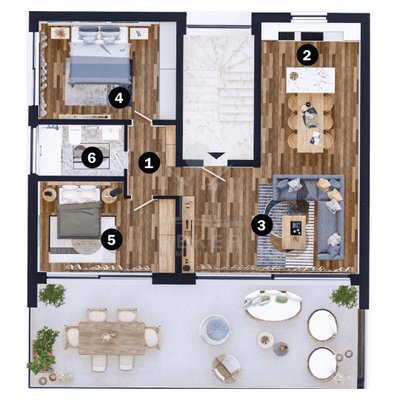 - · 3 Zimmer