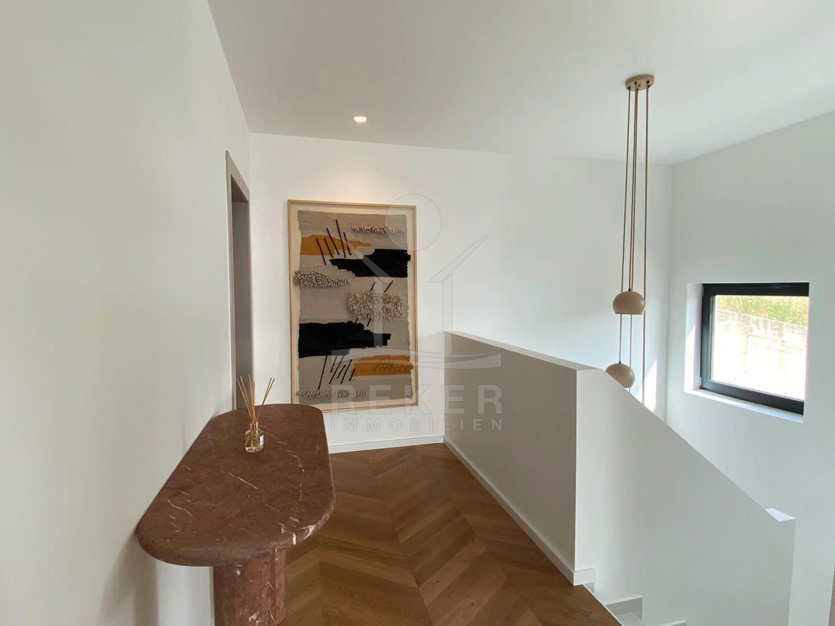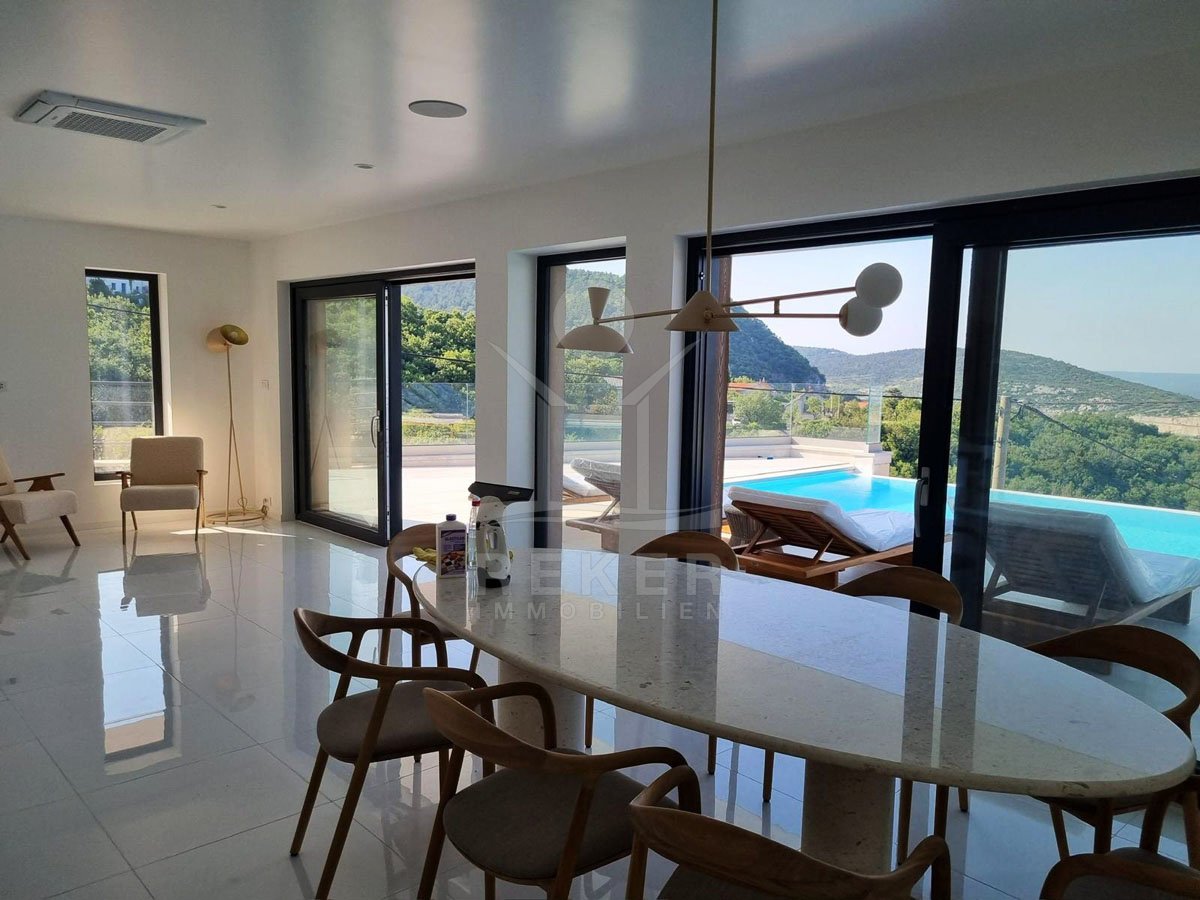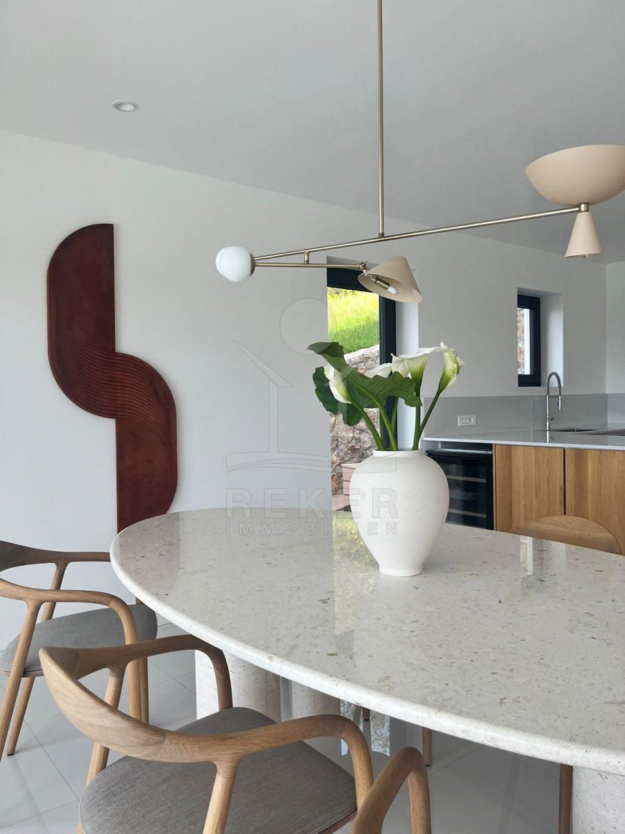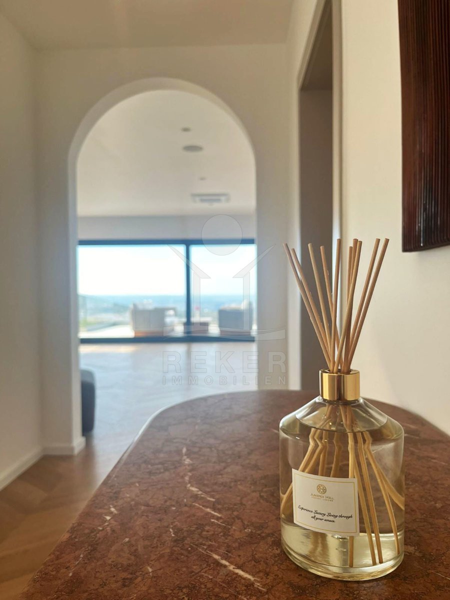 Genießen Sie das Leben auf höchstem Niveau in dieser exquisiten modernen Villa in Hreljin, ganz in der Nähe von Rijeka. Diese Traumimmobilie überzeugt nicht nur durch ihr atemberaubendes modernes Design, sondern auch durch einen beheizten Infinity-Pool, der Ihnen einen unbezahlbaren Meerblick und ultimative Entspannung bietet. Die ruhige Lage in der Kvarner Bucht sorgt dafür, dass Sie sich jederzeit zurückziehen und die Natur genießen können. Der Wellnessbereich mit Sauna und Whirlpool lädt dazu ein, sich nach einem langen Tag zu entspannen, während der Fitnessraum perfekte Möglichkeiten zur aktiven Erholung bietet.