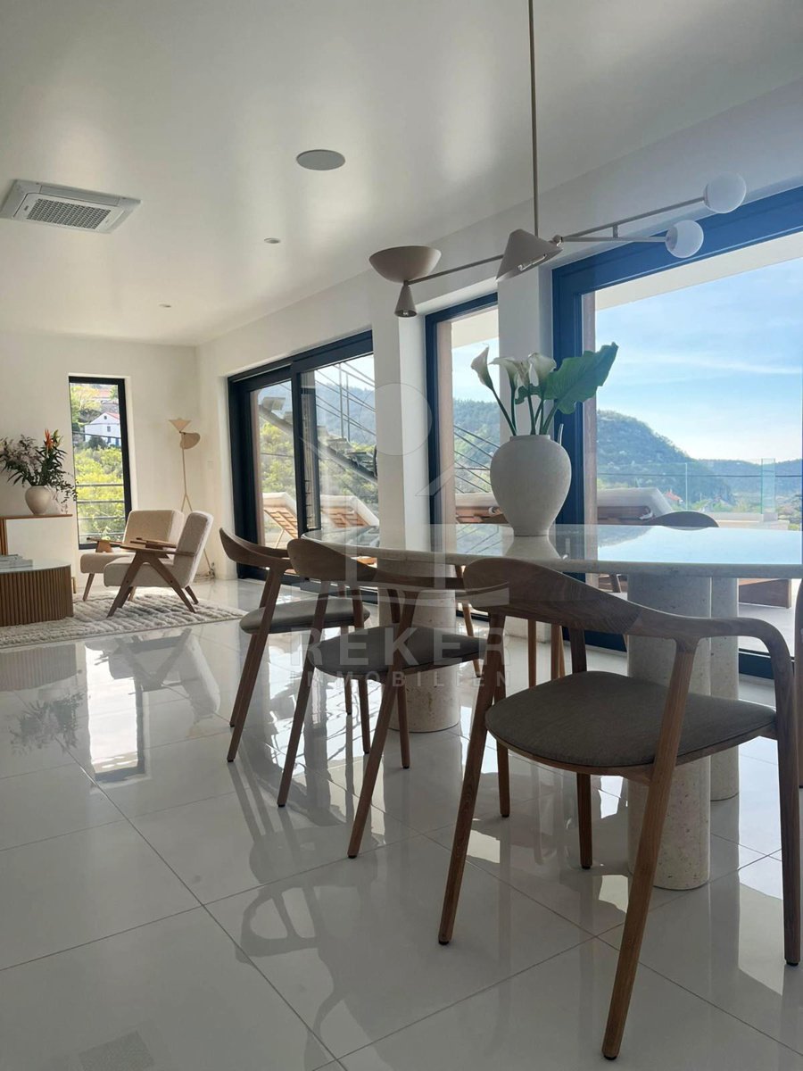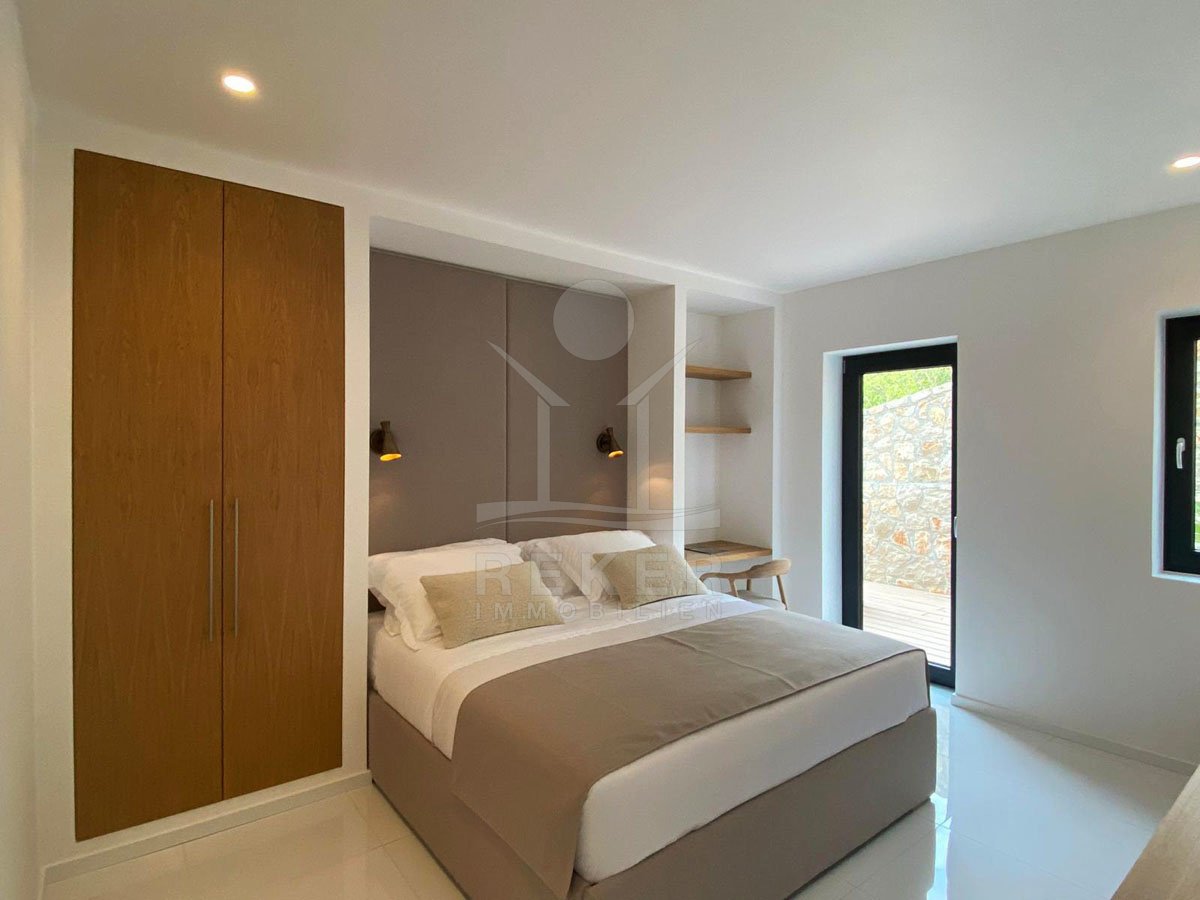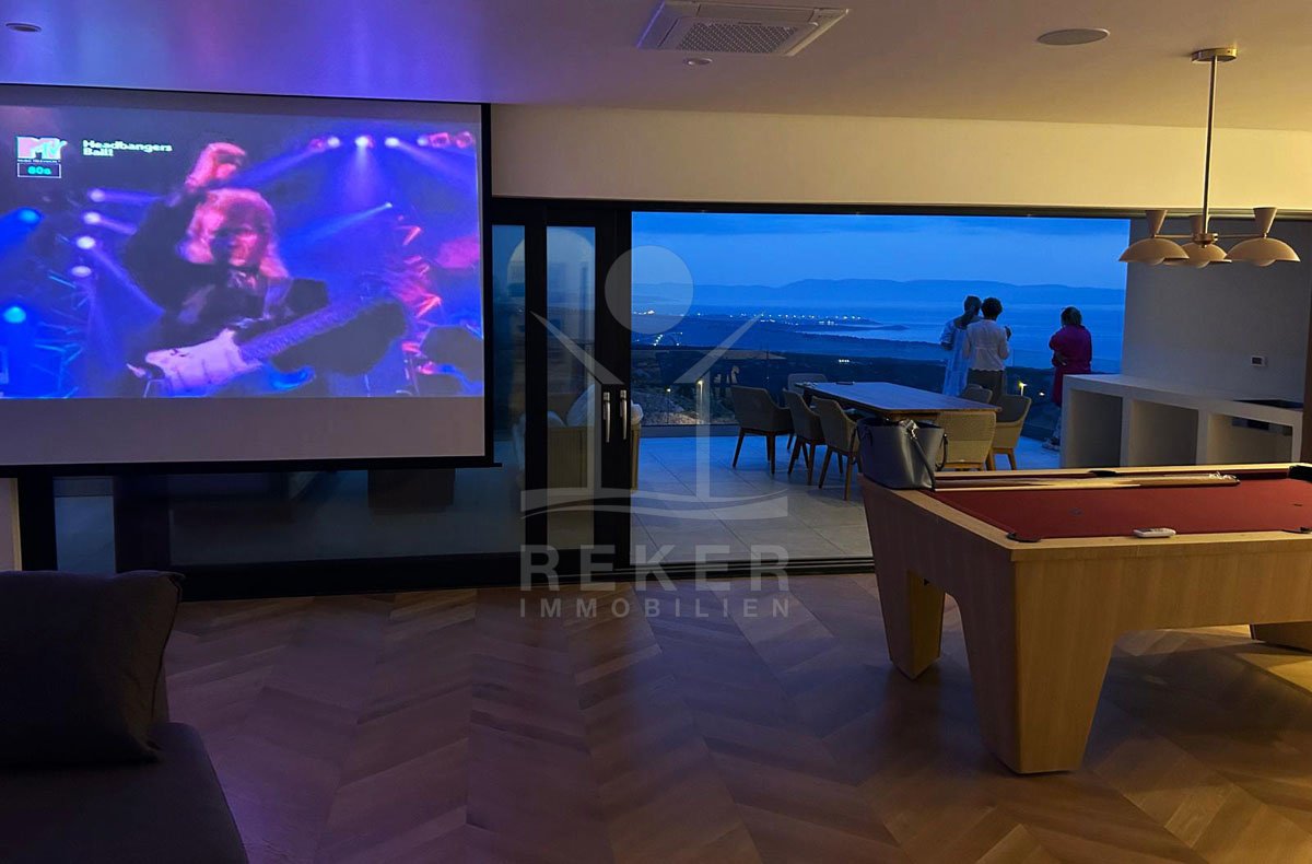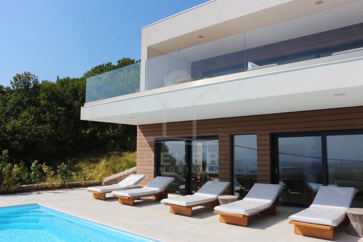 Genießen Sie das Leben auf höchstem Niveau in dieser exquisiten modernen Villa in Hreljin, ganz in der Nähe von Rijeka. Diese Traumimmobilie überzeugt nicht nur durch ihr atemberaubendes modernes Design, sondern auch durch einen beheizten Infinity-Pool, der Ihnen einen unbezahlbaren Meerblick und ultimative Entspannung bietet. Die ruhige Lage in der Kvarner Bucht sorgt dafür, dass Sie sich jederzeit zurückziehen und die Natur genießen können. Der Wellnessbereich mit Sauna und Whirlpool lädt dazu ein, sich nach einem langen Tag zu entspannen, während der Fitnessraum perfekte Möglichkeiten zur aktiven Erholung bietet.