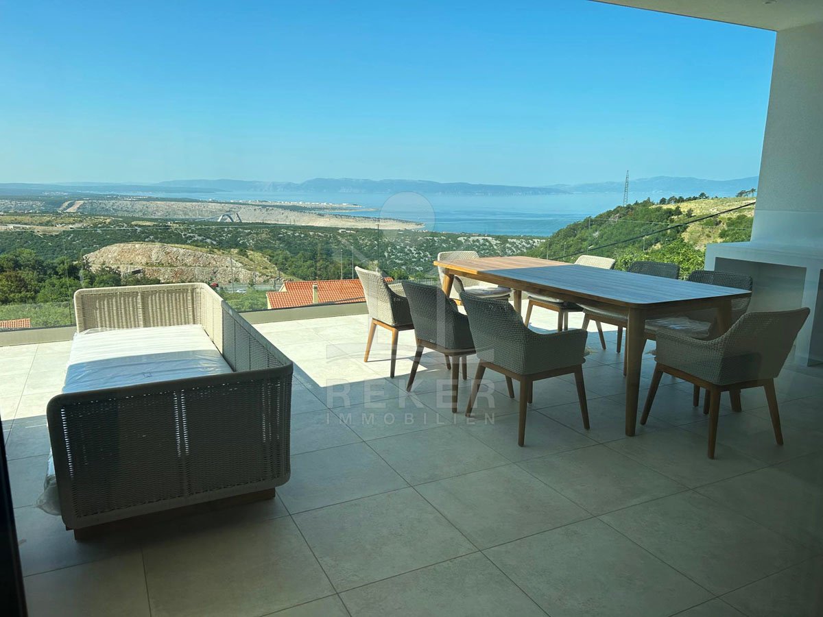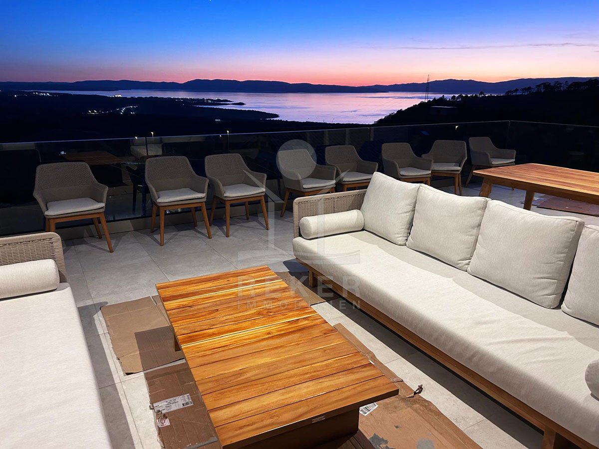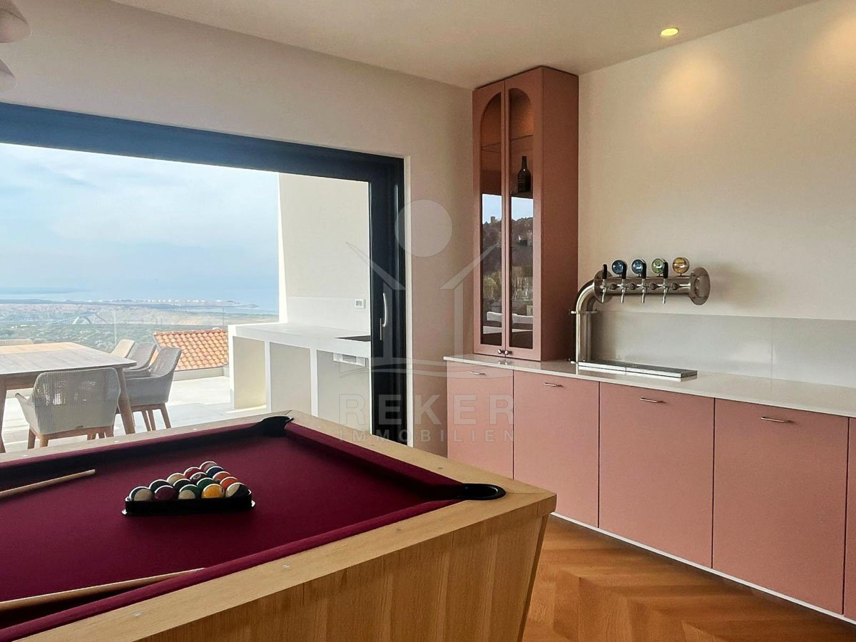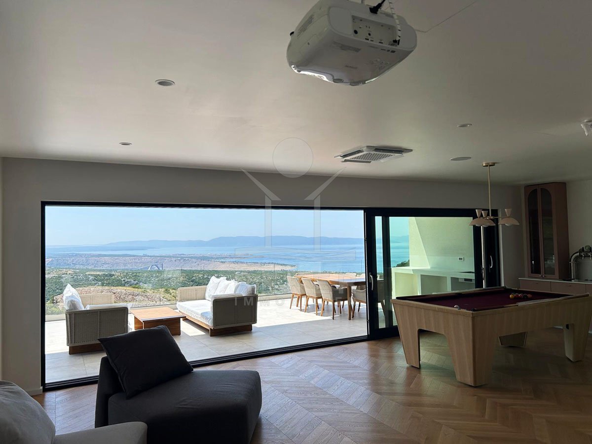 Genießen Sie das Leben auf höchstem Niveau in dieser exquisiten modernen Villa in Hreljin, ganz in der Nähe von Rijeka. Diese Traumimmobilie überzeugt nicht nur durch ihr atemberaubendes modernes Design, sondern auch durch einen beheizten Infinity-Pool, der Ihnen einen unbezahlbaren Meerblick und ultimative Entspannung bietet. Die ruhige Lage in der Kvarner Bucht sorgt dafür, dass Sie sich jederzeit zurückziehen und die Natur genießen können. Der Wellnessbereich mit Sauna und Whirlpool lädt dazu ein, sich nach einem langen Tag zu entspannen, während der Fitnessraum perfekte Möglichkeiten zur aktiven Erholung bietet.