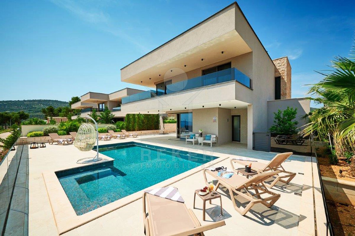 Entdecken Sie eine einmalige Gelegenheit, die Eleganz und den Komfort dieser 3 luxuriösen Villen in der Nähe von Trogir zu erleben. Jede Villa bietet einen spektakulären Panoramablick auf das glitzernde Meer und ist nur einen Schritt von den
