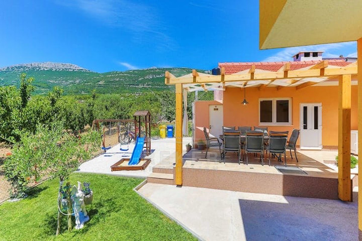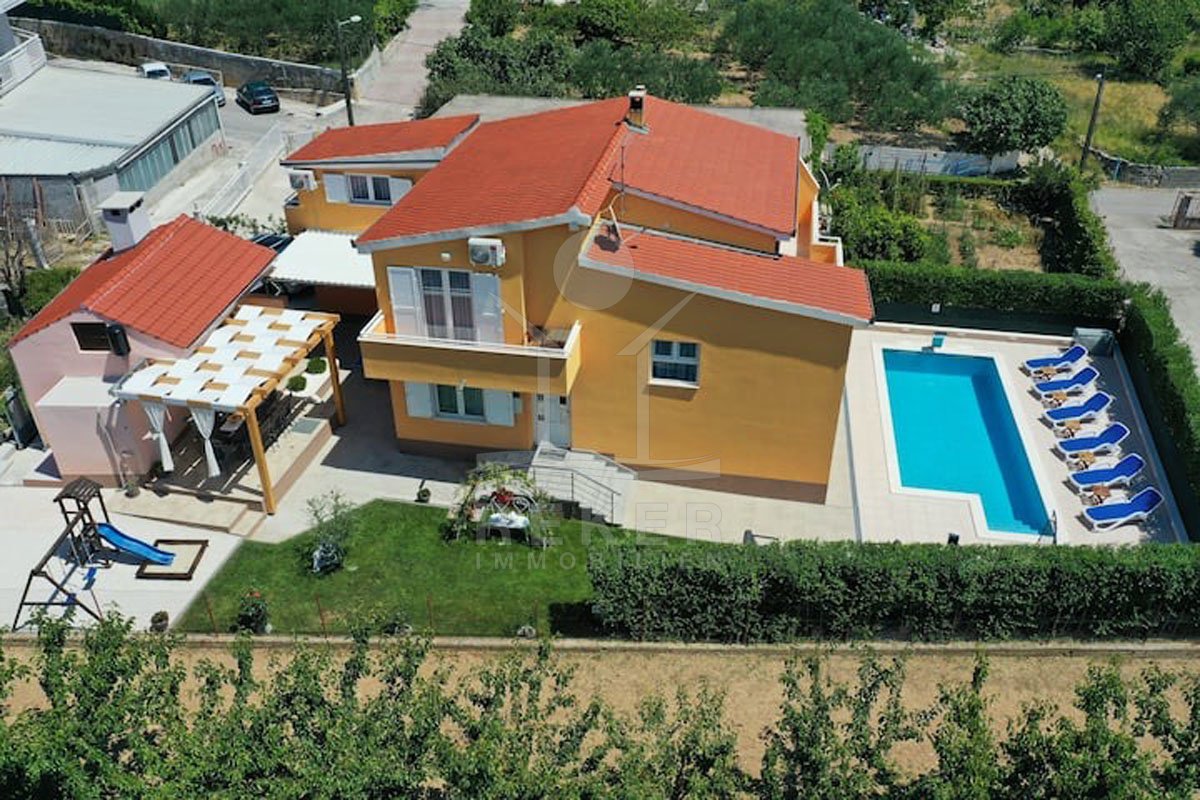 Entdecken Sie ein einmaliges Angebot, in die Welt der Ferienvermietung einzutauchen! Diese etablierte Villa in Kaštela bietet Ihnen nicht nur zwei separate, identisch gestaltete Wohnungen, sondern auch eine vollständige Einrichtung, die sofortige Vermietungen ermöglicht. Genießen Sie den beheizten Swimmingpool und genießen Sie die sonnigen Tage im liebevoll gestalteten Garten – der perfekte Ort für unvergessliche Sommermomente. Dank der bereits vorhandenen touristischen Infrastruktur können Sie mühelos von der anhaltenden Nachfrage profitieren. Diese Ferienanlage kombiniert Komfort mit einem profitablen Investment und verspricht sowohl reichlich Erholung als auch finanziellen Erfolg!