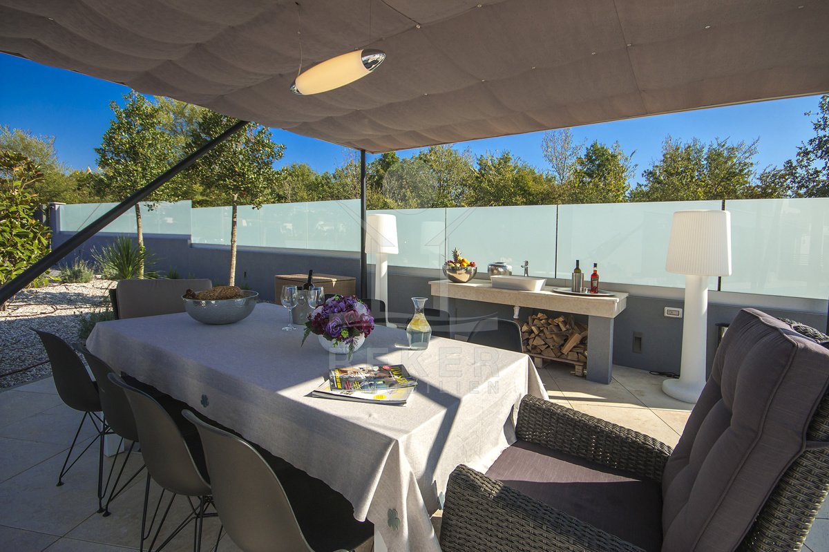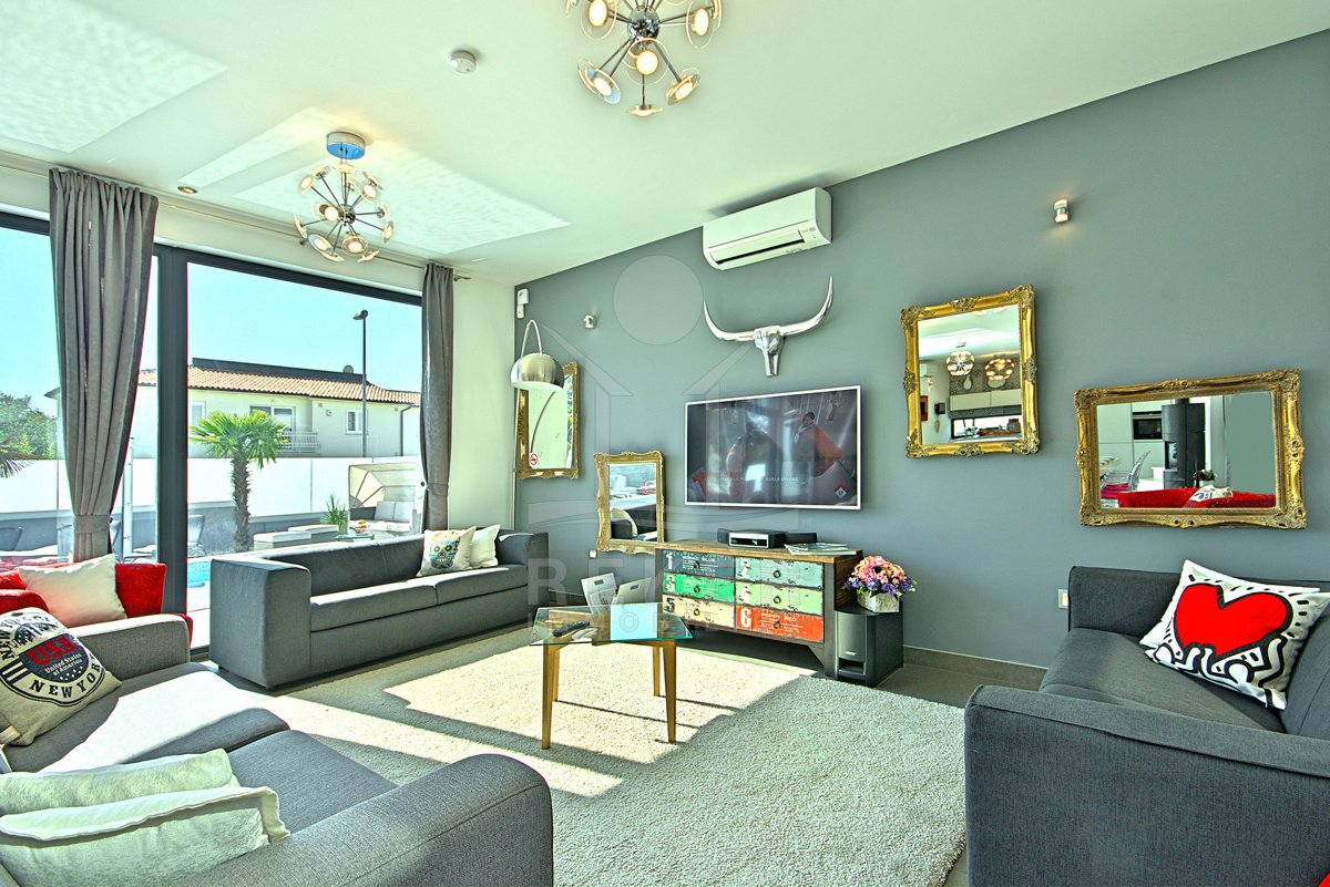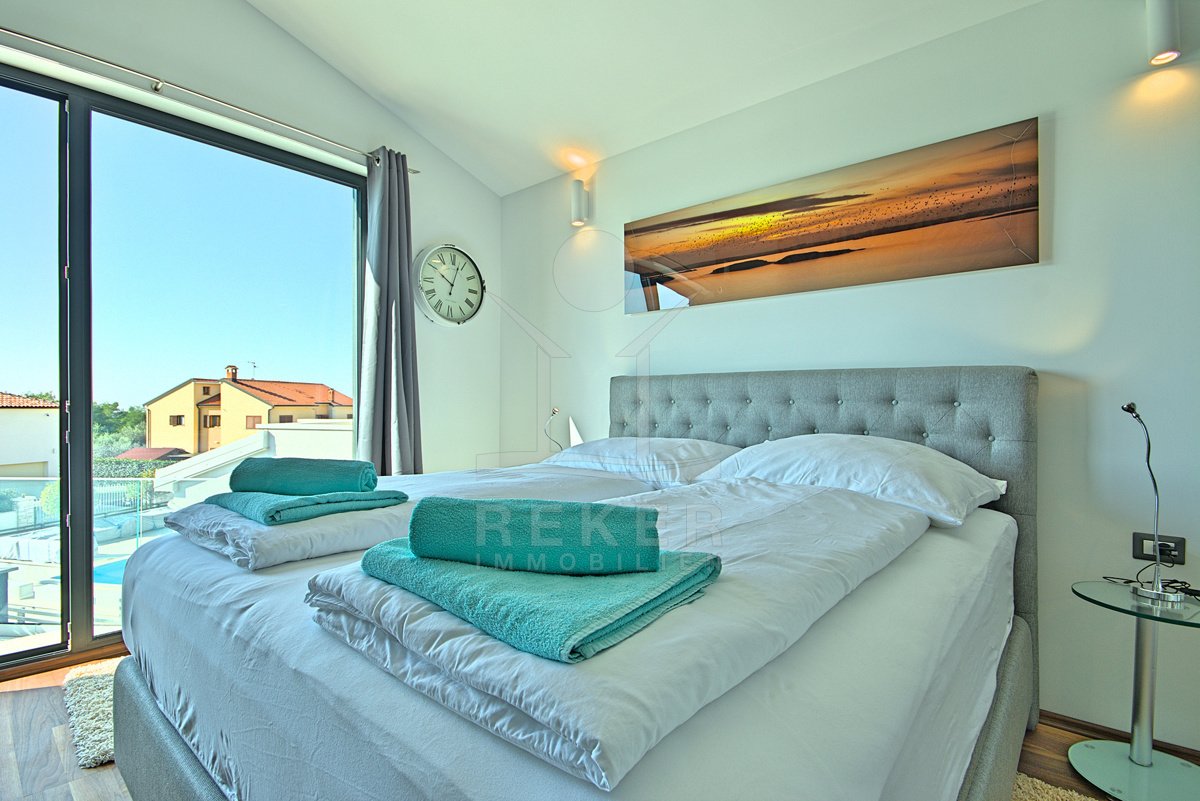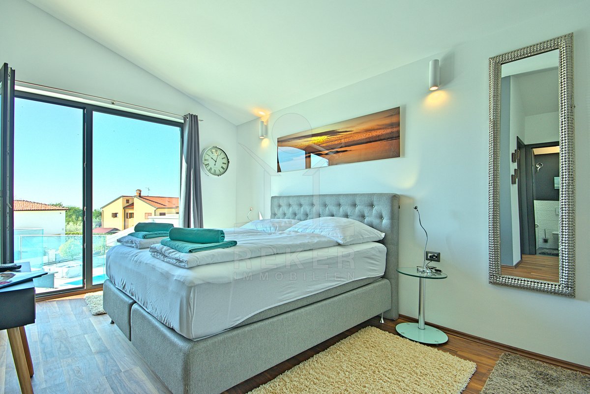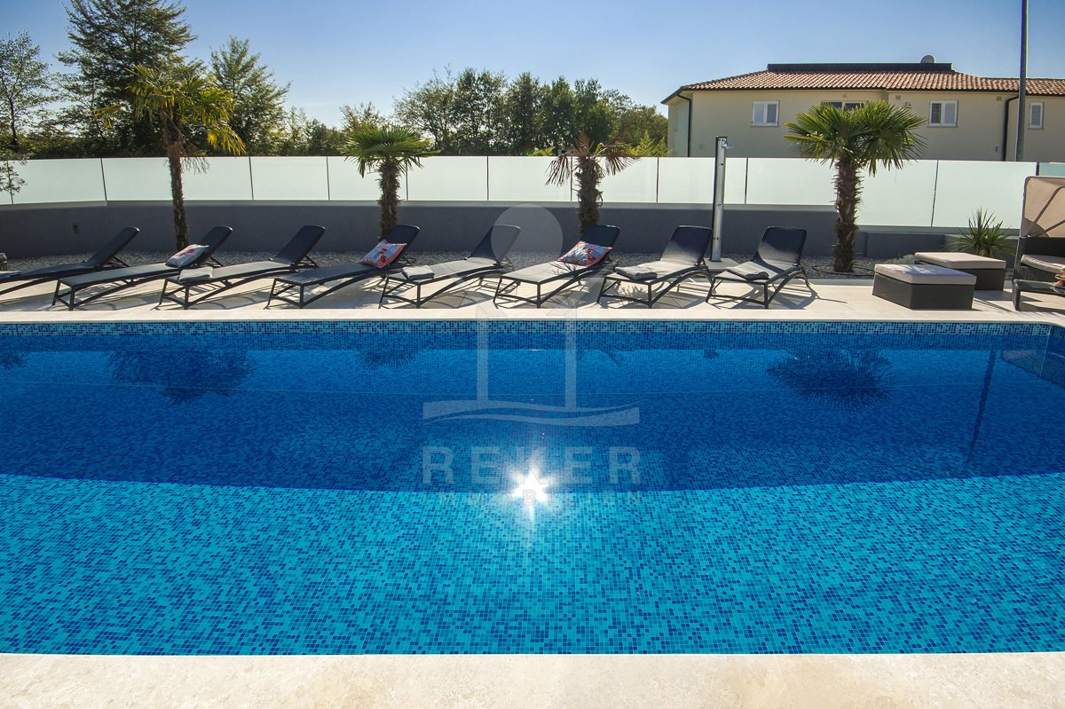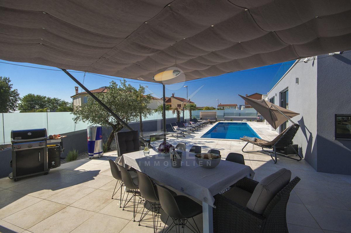 Herzlich willkommen in Ihrer Traumvilla in der Nähe von Poreč, wo modernes Design auf ein einladendes Familienleben trifft! Diese wunderschön möblierte und ausgestattete Villa begeistert mit einer herrlichen, überdachten Terrasse, die sich ideal für entspannte Grillabende oder gemütliche Frühstücke unter freiem Himmel eignet. Der beeindruckende Pool lädt zu erfrischenden Schwimmrunden und unvergesslichen Sommertagen ein. Zusätzlich sorgt eine Videoüberwachung für Ihre Sicherheit und ein großzügiger Parkplatz mit Platz für mindestens vier Fahrzeuge bietet Ihnen den Komfort, den Sie brauchen. Diese Villa verkörpert nicht nur Luxus, sondern auch Funktionalität und Sicherheit für die ganze Familie. Genießen Sie den perfekten Rückzugsort und schaffen Sie Erinnerungen, die ein Leben lang halten!