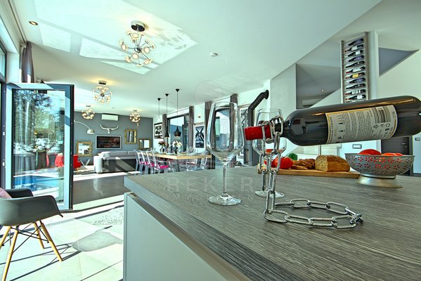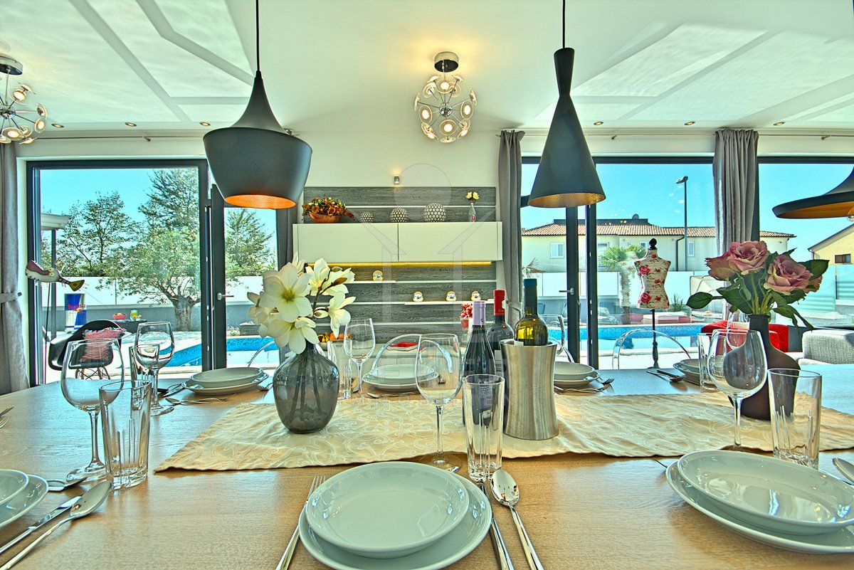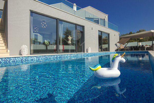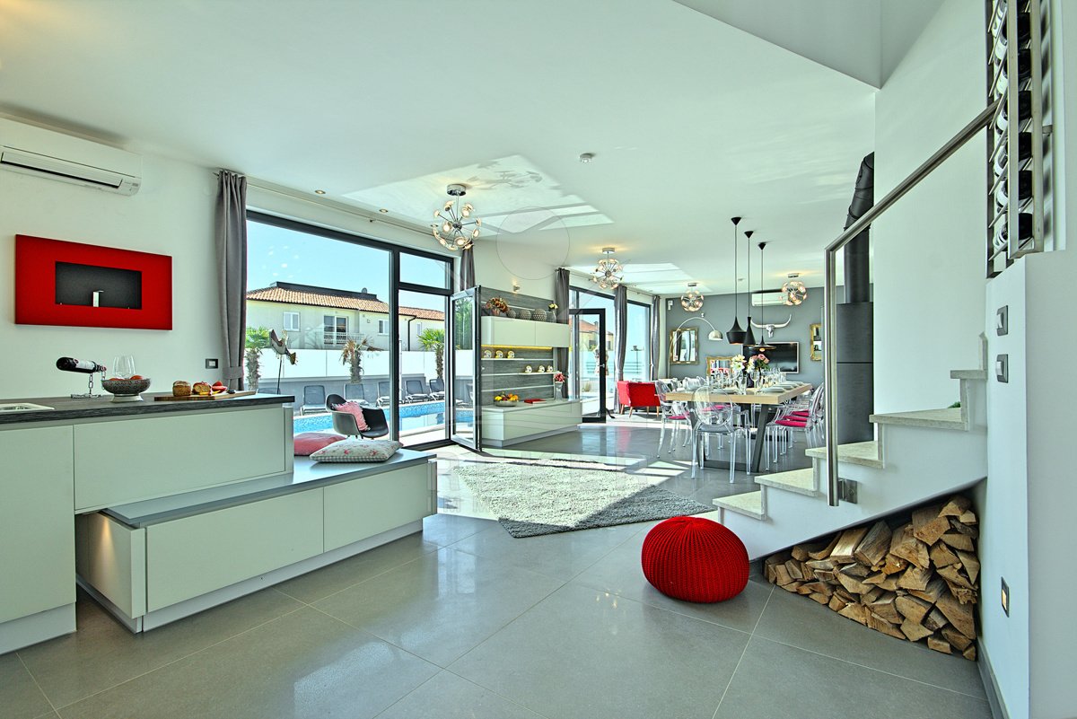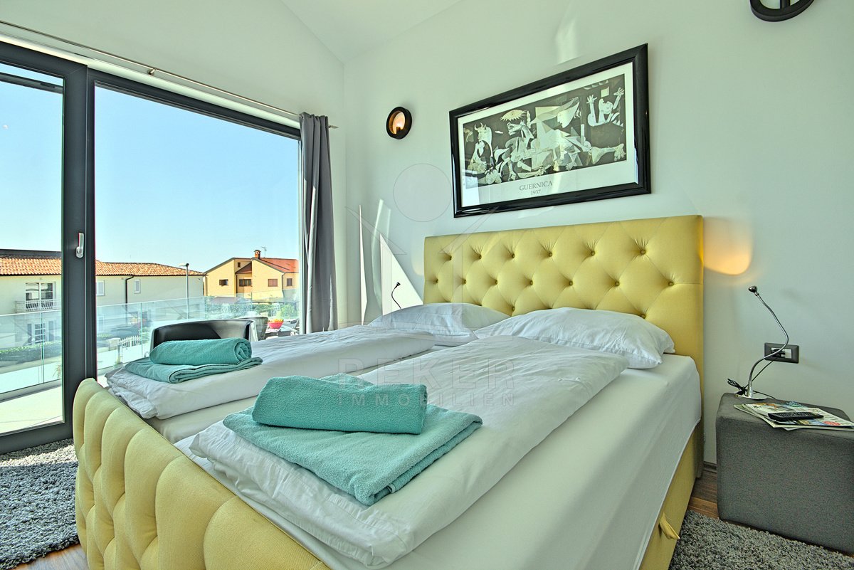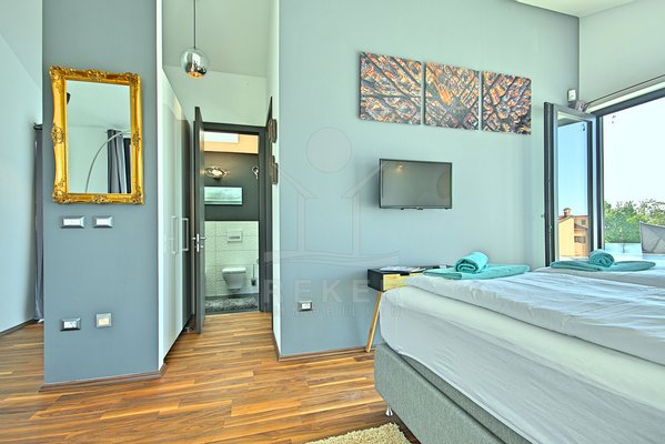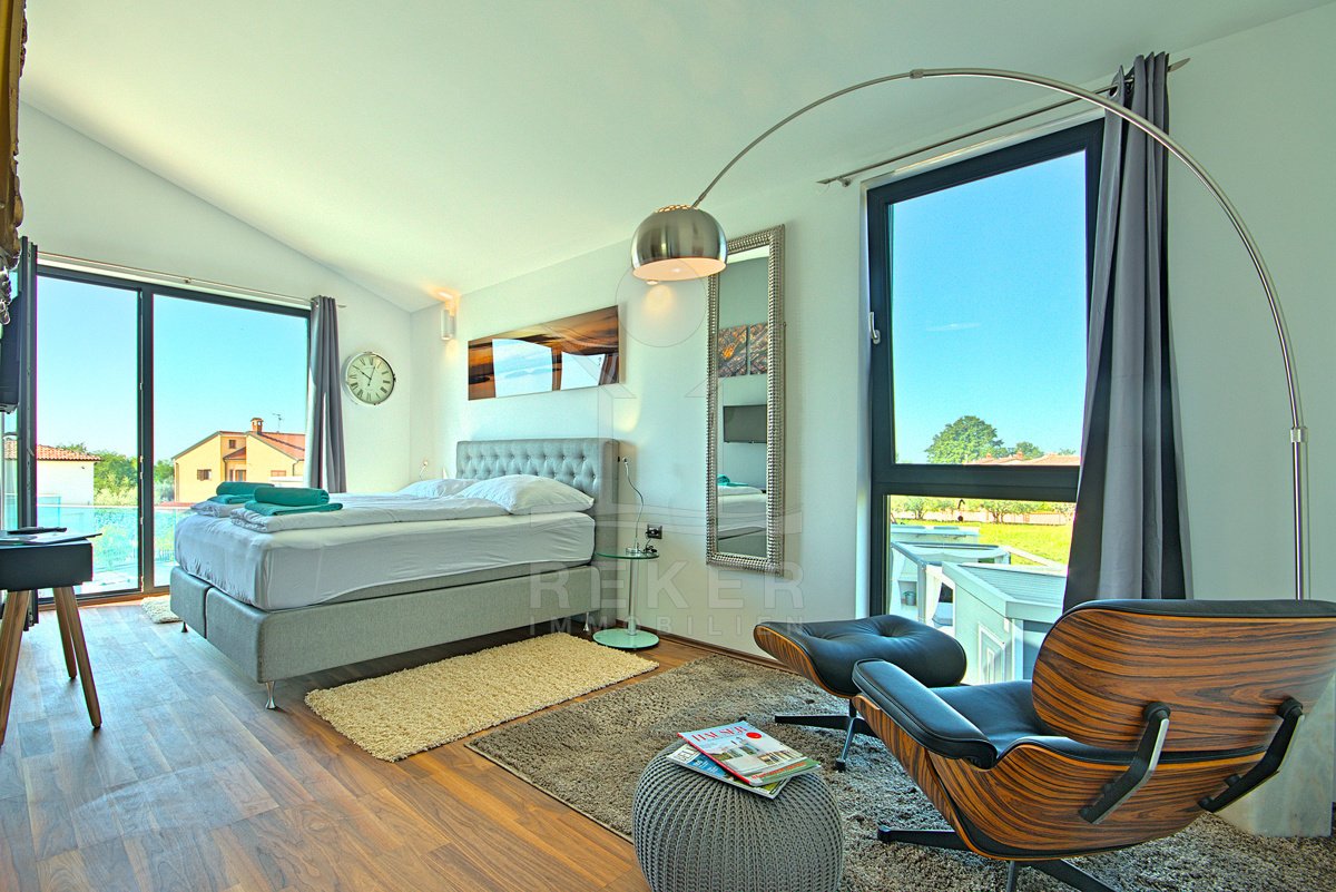 Herzlich willkommen in Ihrer Traumvilla in der Nähe von Poreč, wo modernes Design auf ein einladendes Familienleben trifft! Diese wunderschön möblierte und ausgestattete Villa begeistert mit einer herrlichen, überdachten Terrasse, die sich ideal für entspannte Grillabende oder gemütliche Frühstücke unter freiem Himmel eignet. Der beeindruckende Pool lädt zu erfrischenden Schwimmrunden und unvergesslichen Sommertagen ein. Zusätzlich sorgt eine Videoüberwachung für Ihre Sicherheit und ein großzügiger Parkplatz mit Platz für mindestens vier Fahrzeuge bietet Ihnen den Komfort, den Sie brauchen. Diese Villa verkörpert nicht nur Luxus, sondern auch Funktionalität und Sicherheit für die ganze Familie. Genießen Sie den perfekten Rückzugsort und schaffen Sie Erinnerungen, die ein Leben lang halten!