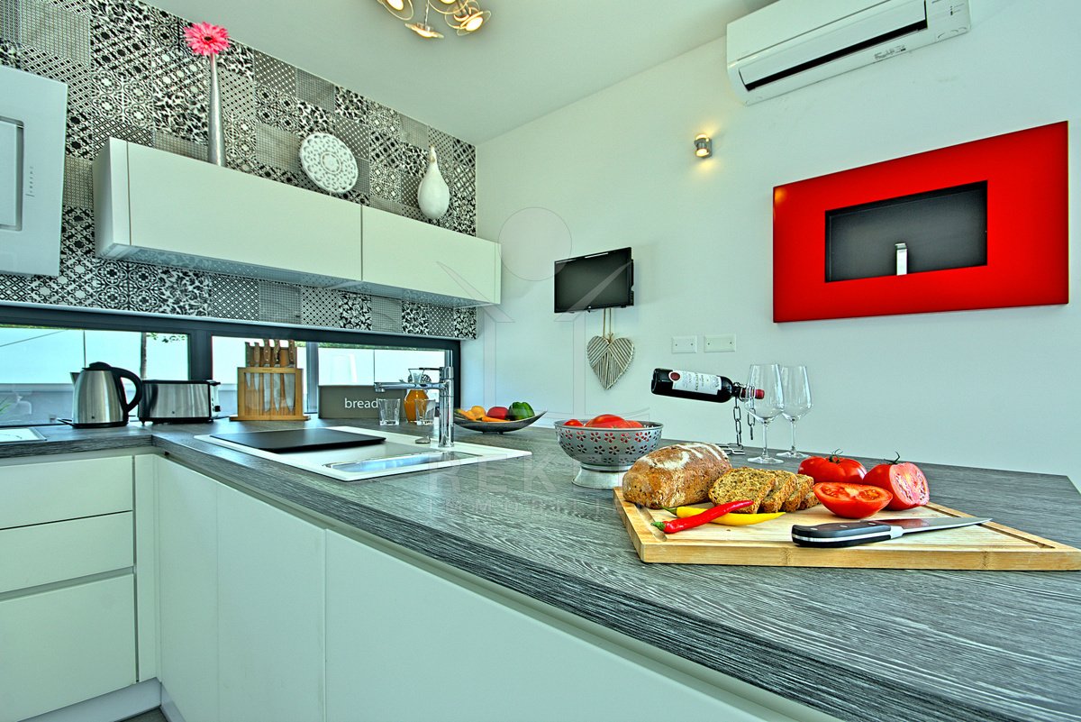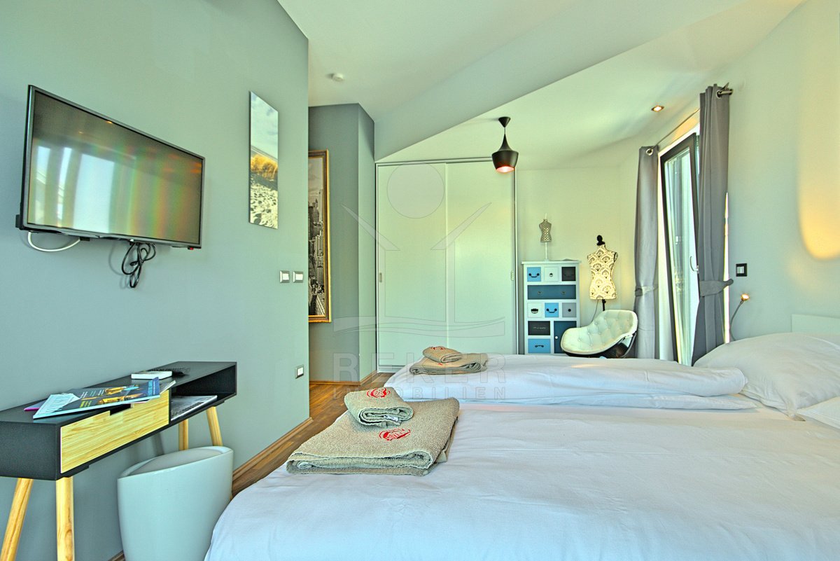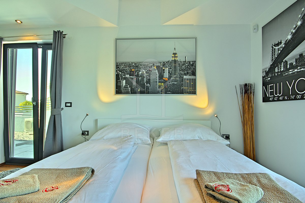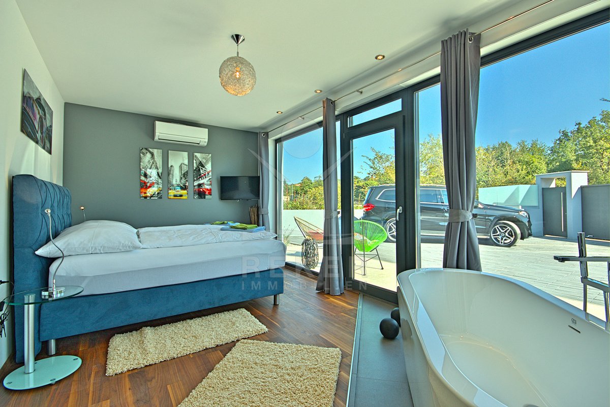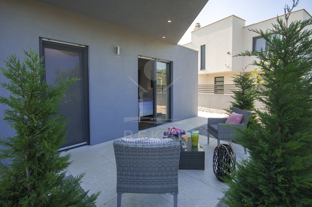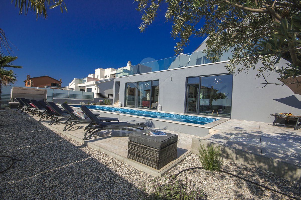 Herzlich willkommen in Ihrer Traumvilla in der Nähe von Poreč, wo modernes Design auf ein einladendes Familienleben trifft! Diese wunderschön möblierte und ausgestattete Villa begeistert mit einer herrlichen, überdachten Terrasse, die sich ideal für entspannte Grillabende oder gemütliche Frühstücke unter freiem Himmel eignet. Der beeindruckende Pool lädt zu erfrischenden Schwimmrunden und unvergesslichen Sommertagen ein. Zusätzlich sorgt eine Videoüberwachung für Ihre Sicherheit und ein großzügiger Parkplatz mit Platz für mindestens vier Fahrzeuge bietet Ihnen den Komfort, den Sie brauchen. Diese Villa verkörpert nicht nur Luxus, sondern auch Funktionalität und Sicherheit für die ganze Familie. Genießen Sie den perfekten Rückzugsort und schaffen Sie Erinnerungen, die ein Leben lang halten!