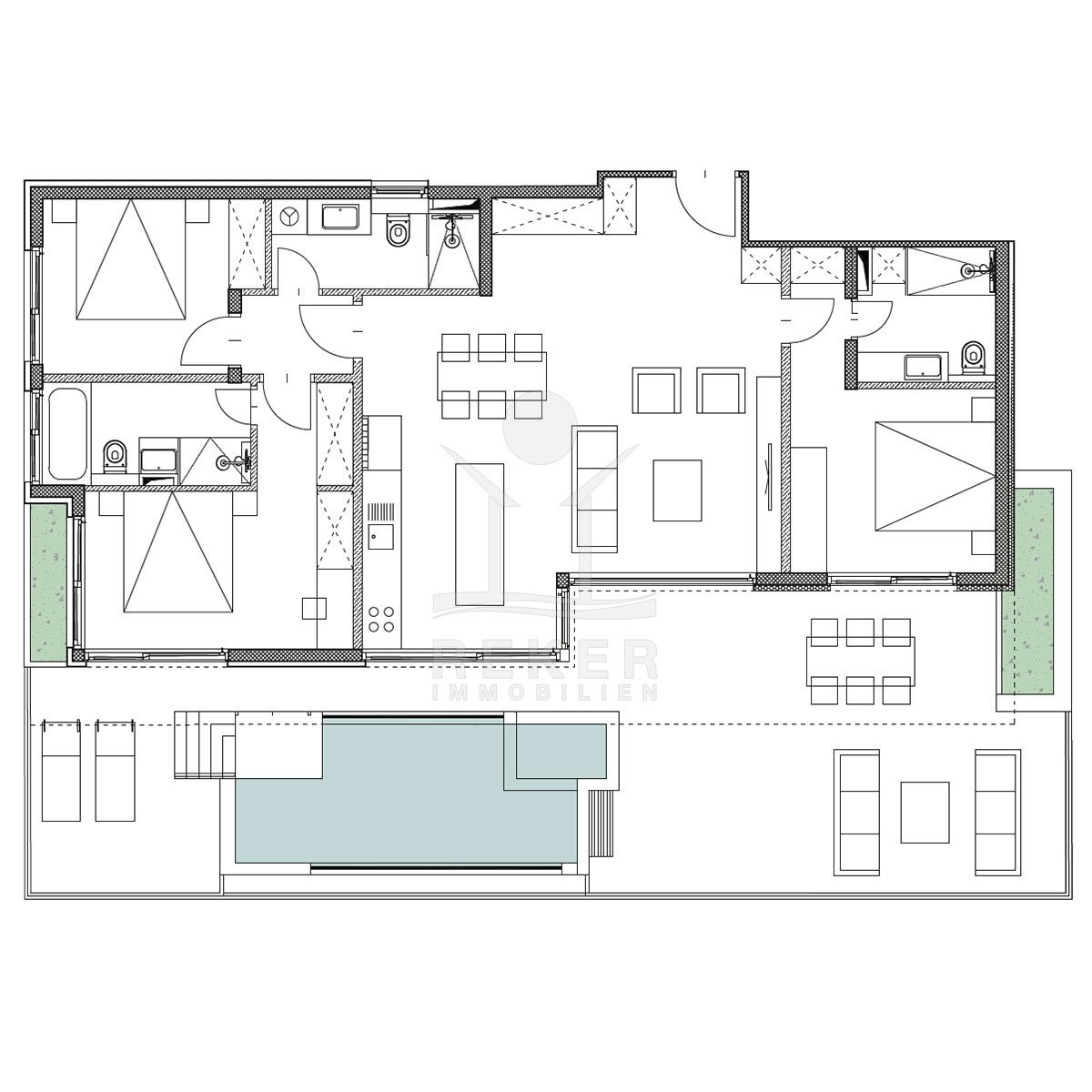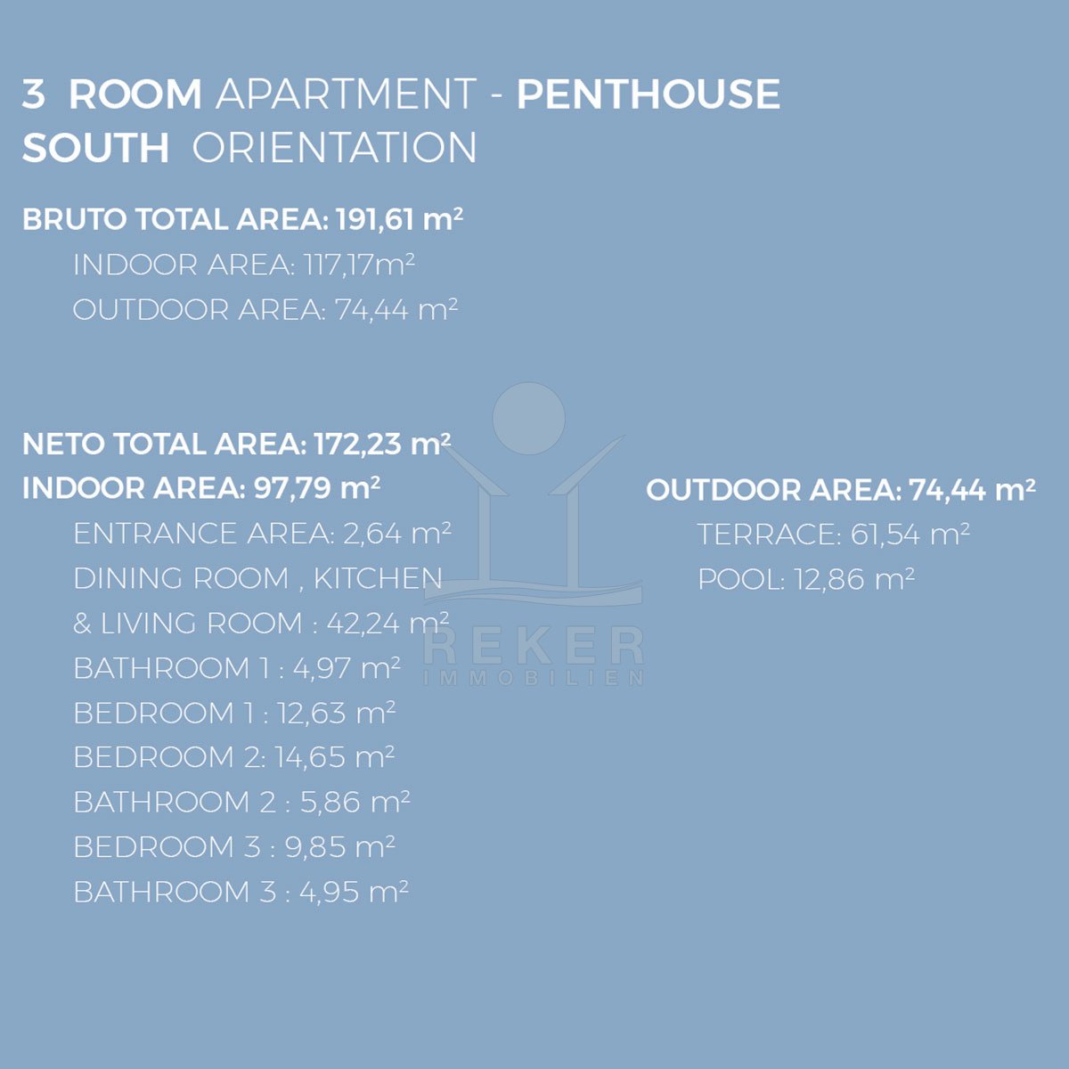 Dieses luxuriöse Neubau-Penthouse begeistert mit höchstem Wohnkomfort und mit einem eigenen Swimmingpool auf der atemberaubenden Dachterrasse, wo Sie sich entspannen und den fantastischen Panorama-Meerblick genießen können. Mit drei großzügigen Schlafzimmern, einem modernen Aufzug und drei inkludierten Parkplätzen wird Ihnen alle Annehmlichkeiten geboten, die Sie sich wünschen. Darüber hinaus stehen Ihnen Gemeinschaftsbereiche zur Verfügung, die mit einem hochwertigen Wellnessbereich und einem Fitnessraum ausgestattet sind – ideal für Ihr persönliches Wohlbefinden. Hier verbindet sich stilvolles Wohnen mit einem exklusiven Lebensstil, den Sie in vollen Zügen genießen können. Machen Sie diesen Ort zu Ihrem neuen Zuhause im Paradies!