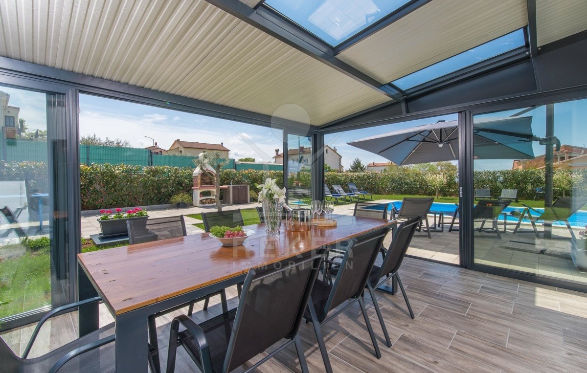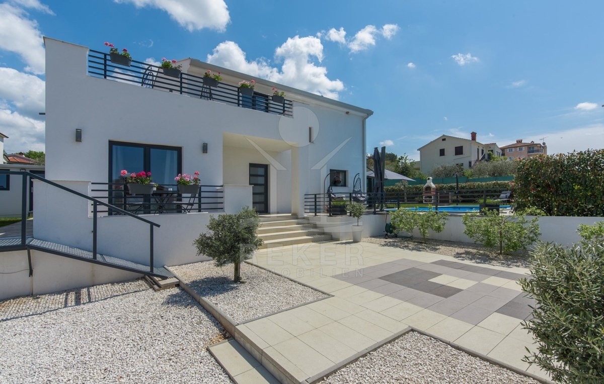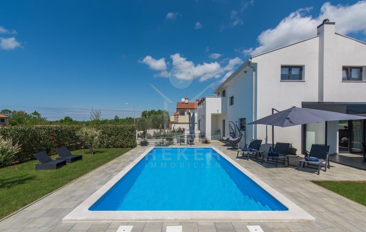 Diese moderne Villa in der Nähe von Poreč kombiniert stilvolles Design mit einem beeindruckenden Garten und einem einladenden Wintergarten. Der großzügige Swimmingpool lädt zu erfrischenden Schwimmrunden ein und die gepflegte Gartenlandschaft sorgt für absolute Ruhe und Entspannung. Die stilvolle Einrichtung bietet Ihnen einen perfekten Raum zum Entspannen und Unterhalten gleichermaßen. Hier werden jedes Detail und die großzügigen Räume dazu beitragen, dass Sie sich sofort zu Hause fühlen. Erleben Sie das Beste, was das Leben an der Adriaküste zu bieten hat – ein Ort, an dem Sie nicht mehr weg möchten!