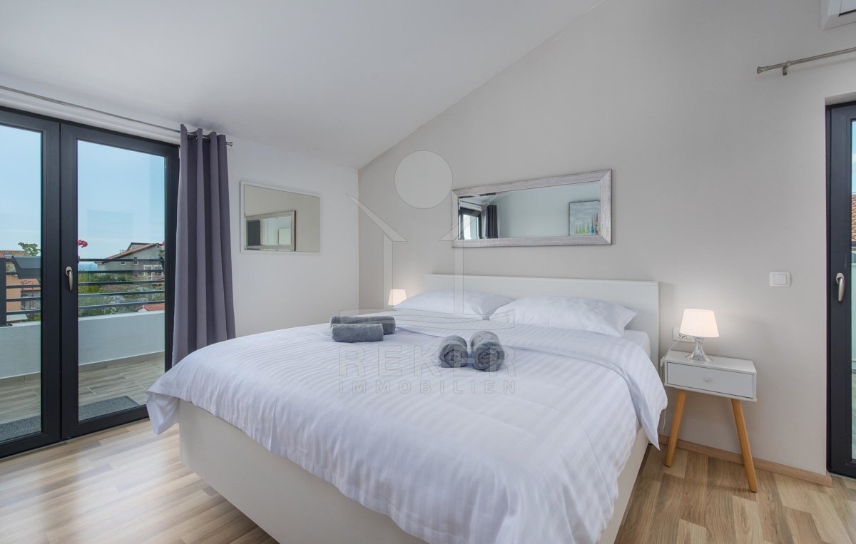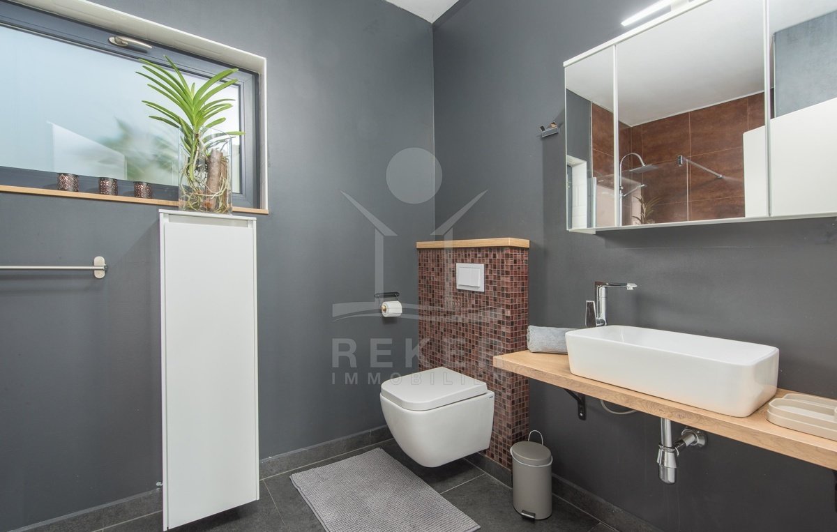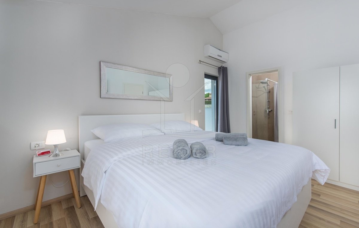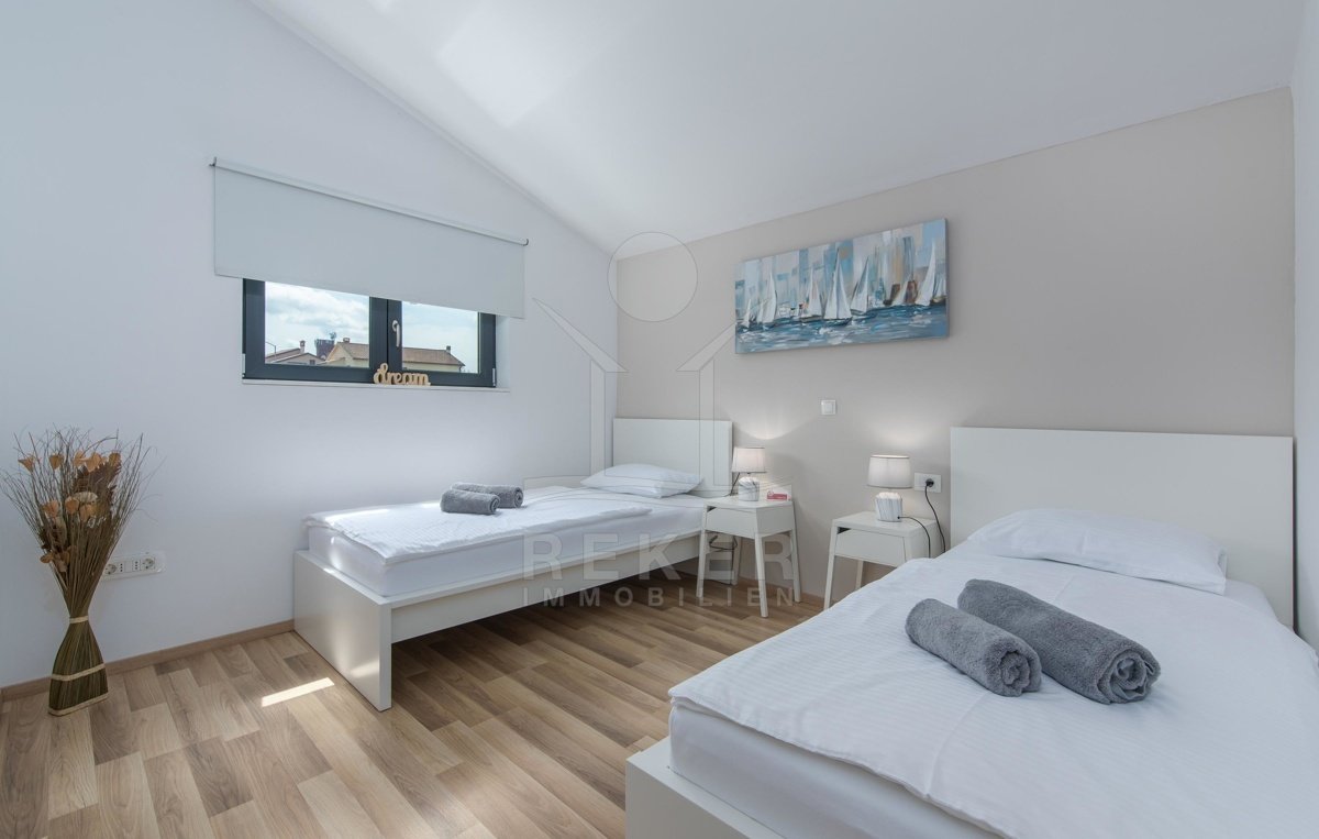 Diese moderne Villa in der Nähe von Poreč kombiniert stilvolles Design mit einem beeindruckenden Garten und einem einladenden Wintergarten. Der großzügige Swimmingpool lädt zu erfrischenden Schwimmrunden ein und die gepflegte Gartenlandschaft sorgt für absolute Ruhe und Entspannung. Die stilvolle Einrichtung bietet Ihnen einen perfekten Raum zum Entspannen und Unterhalten gleichermaßen. Hier werden jedes Detail und die großzügigen Räume dazu beitragen, dass Sie sich sofort zu Hause fühlen. Erleben Sie das Beste, was das Leben an der Adriaküste zu bieten hat – ein Ort, an dem Sie nicht mehr weg möchten!