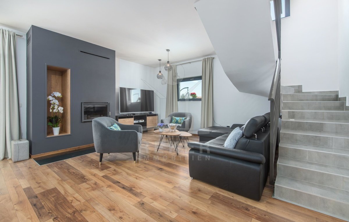 Diese moderne Villa in der Nähe von Poreč kombiniert stilvolles Design mit einem beeindruckenden Garten und einem einladenden Wintergarten. Der großzügige Swimmingpool lädt zu erfrischenden Schwimmrunden ein und die gepflegte Gartenlandschaft sorgt
