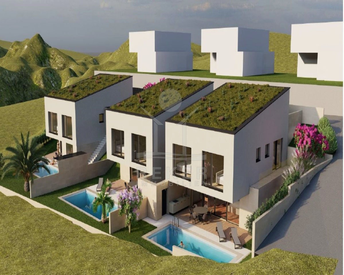 Entdecken Sie Ihre Investitionsmöglichkeit auf der traumhaften Insel Brač! Dieses exklusive Baugrundstück bietet Ihnen nicht nur einen atemberaubenden Meerblick, sondern auch einen bereits vorliegenden Konzeptentwurf für drei luxuriöse Villen, die
