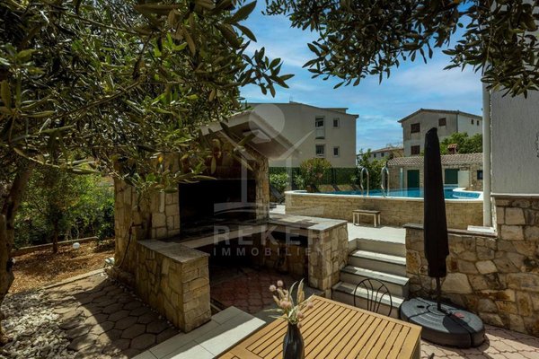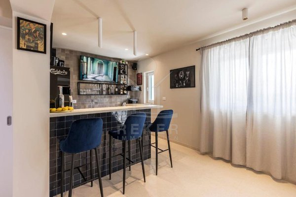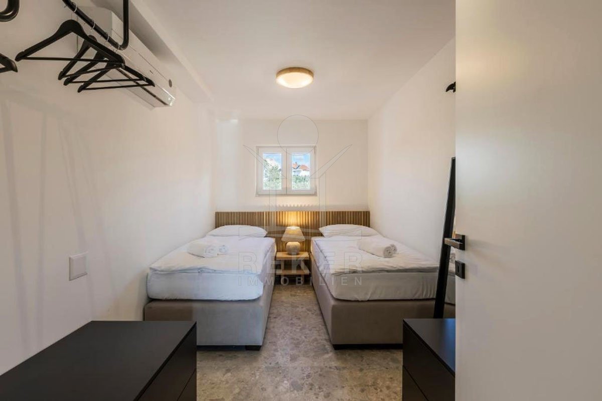 Diese beeindruckende Villa mit 5 Schlafzimmern bietet Ihnen nicht nur großzügigen Platz für Familie und Freunde, sondern auch einen beheizten Pool, der zu entspannten Tagen unter der Sonne einlädt. Genießen Sie erholsame Stunden in Ihrer privaten Sauna und erleben Sie den ultimativen Rückzugsort. Die stilvolle Einrichtung vermittelt ein modernes und einladendes Ambiente, während die Strandnähe Ihnen ermöglicht, das kristallklare Wasser der Adria in vollen Zügen zu genießen. Diese Villa ist nicht nur ein perfektes Eigenheim, sondern auch eine hervorragende Investition in die bereits etablierte Tourismusbranche auf der Insel. Nutzen Sie die Möglichkeit, die erfolgreiche Vermietung fortzuführen und von der einzigartigen Lage und dem charismatischen Flair der Umgebung zu profitieren.