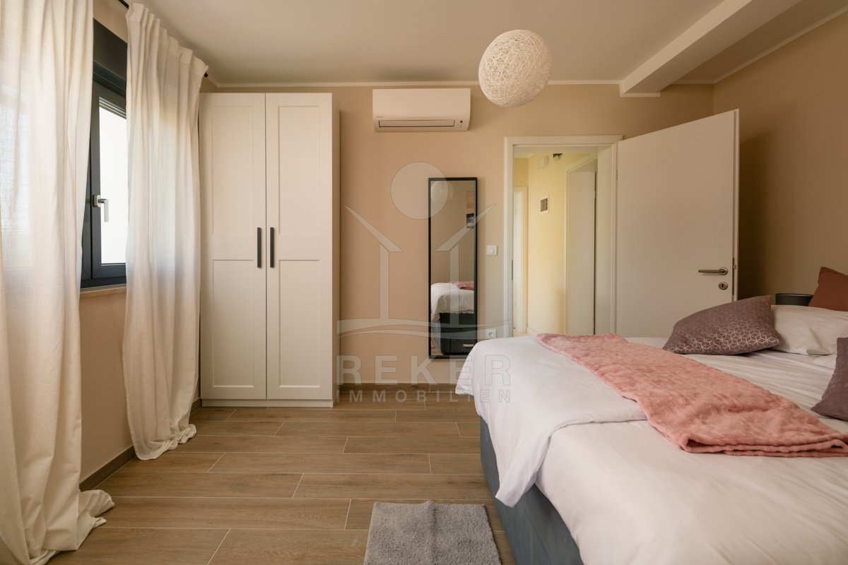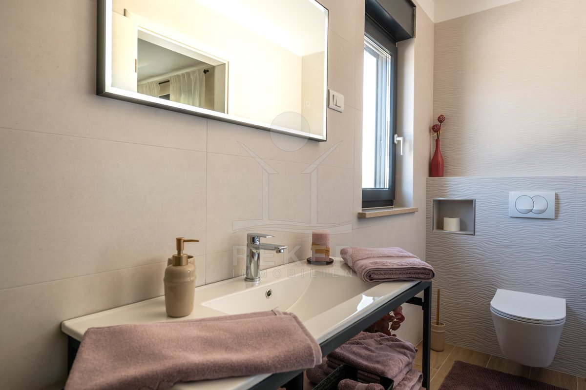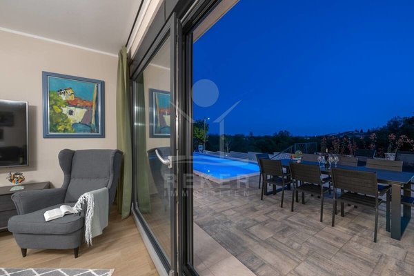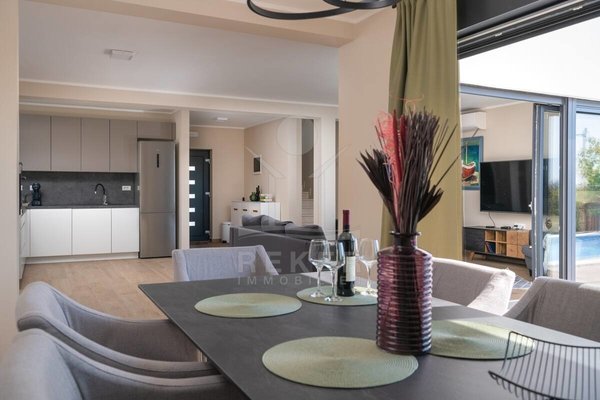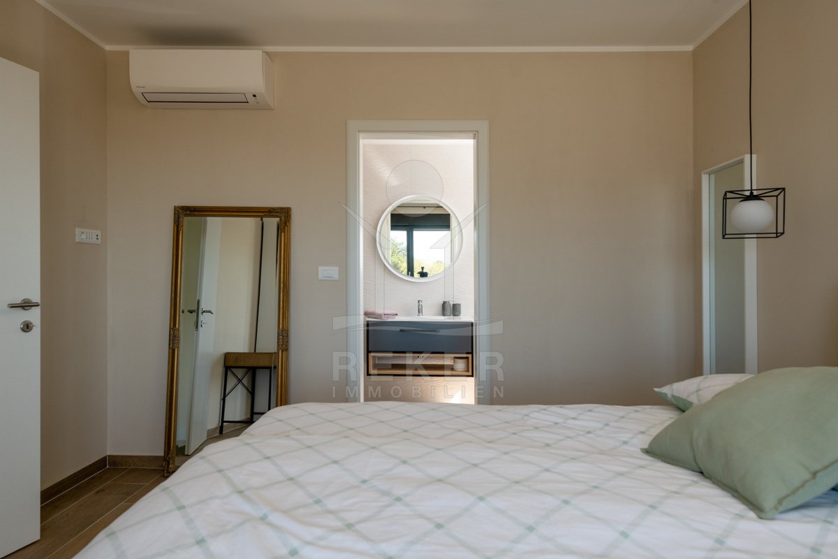 Entdecken Sie Ihr persönliches Paradies in dieser beeindruckenden neuwertigen Villa in Krnica, Istrien! Mit einem fantastischem Meerblick und einem einladenden Pool wird dieses Zuhause zum perfekten Rückzugsort für entspannte Tage und gesellige Abende. Die moderne Architektur und die hochwertigen Ausstattungsmerkmale schaffen ein Gefühl von Luxus und Komfort. Nutzen Sie diese Immobilie sowohl als privates Refugium als auch als profitable Investition! Dank der attraktiven Lage erfreut sich das Haus während der Mietsaison großer Beliebtheit und bietet somit die Möglichkeit, eine stabile Einnahmequelle zu generieren.