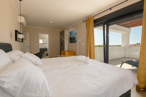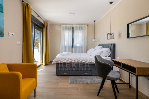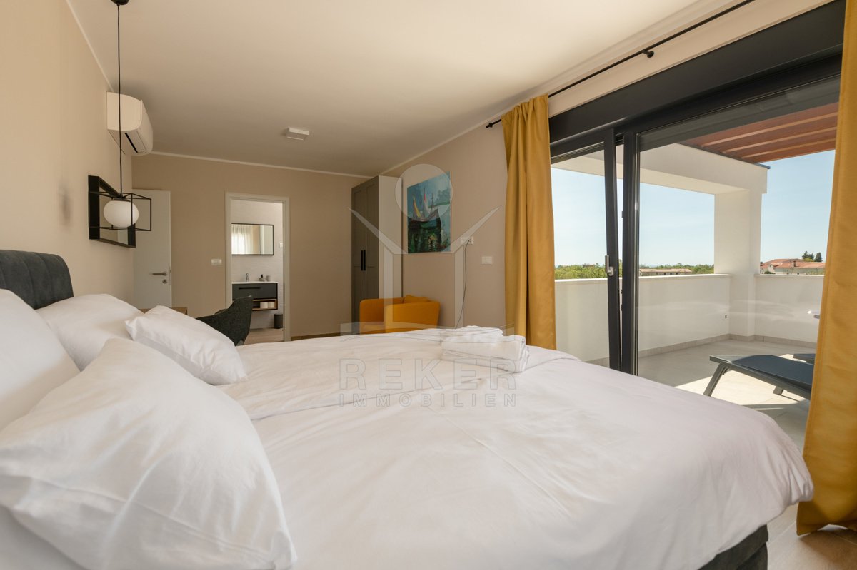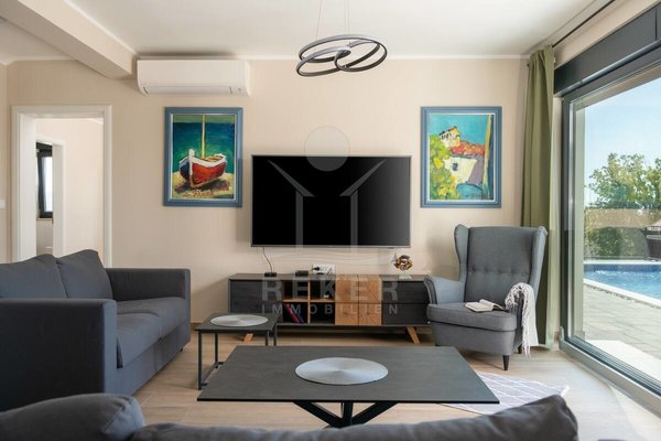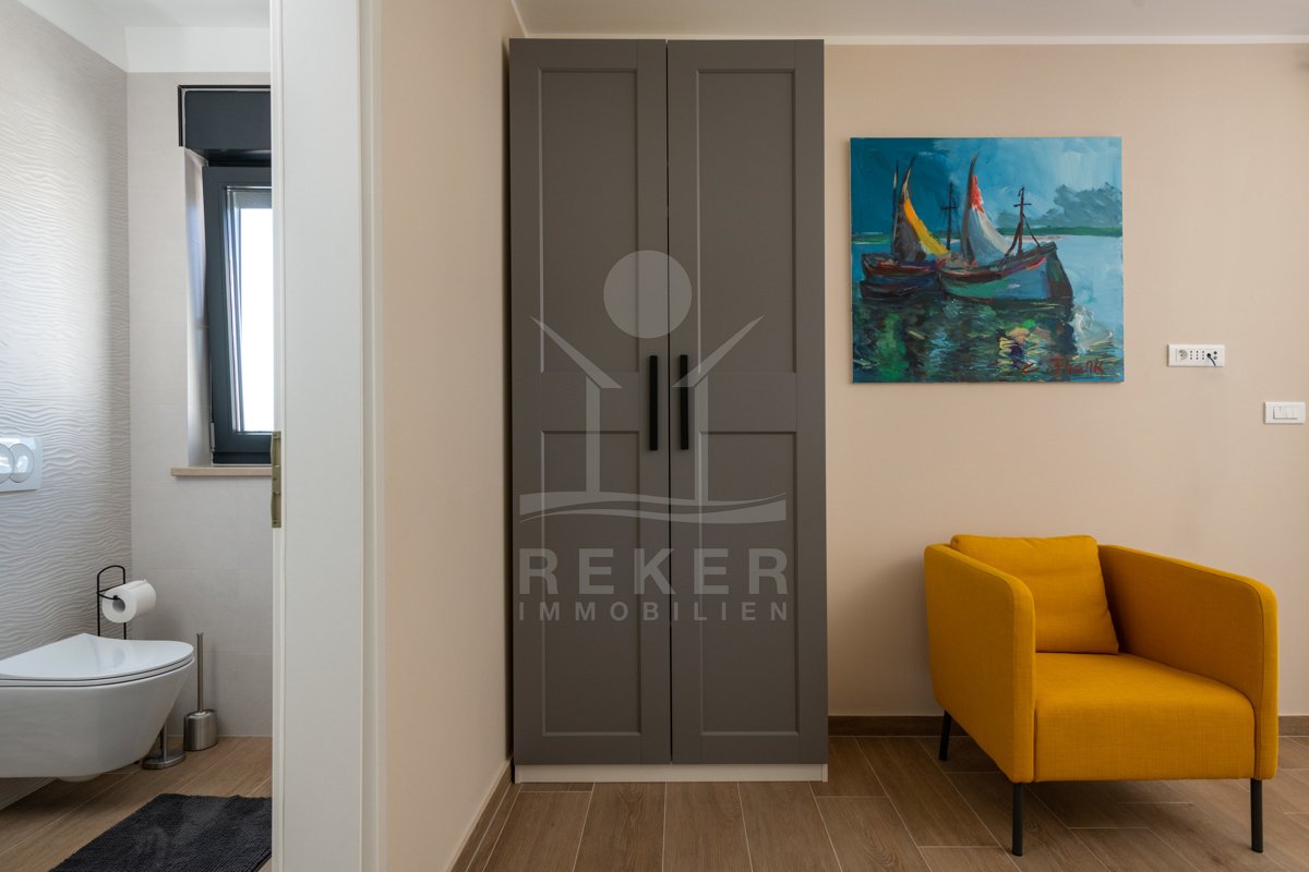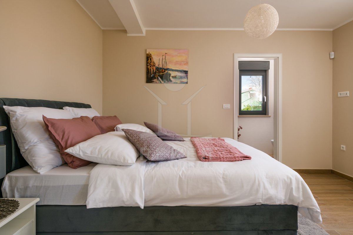 Entdecken Sie Ihr persönliches Paradies in dieser beeindruckenden neuwertigen Villa in Krnica, Istrien! Mit einem fantastischem Meerblick und einem einladenden Pool wird dieses Zuhause zum perfekten Rückzugsort für entspannte Tage und gesellige Abende. Die moderne Architektur und die hochwertigen Ausstattungsmerkmale schaffen ein Gefühl von Luxus und Komfort. Nutzen Sie diese Immobilie sowohl als privates Refugium als auch als profitable Investition! Dank der attraktiven Lage erfreut sich das Haus während der Mietsaison großer Beliebtheit und bietet somit die Möglichkeit, eine stabile Einnahmequelle zu generieren.