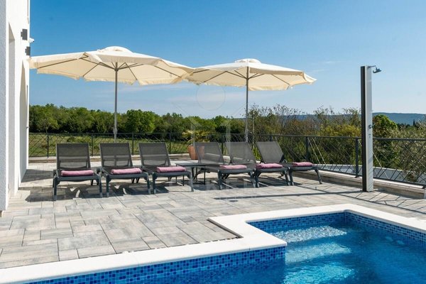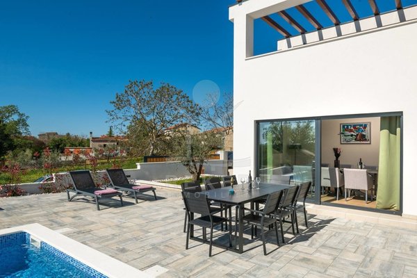 Entdecken Sie Ihr persönliches Paradies in dieser beeindruckenden neuwertigen Villa in Krnica, Istrien! Mit einem fantastischem Meerblick und einem einladenden Pool wird dieses Zuhause zum perfekten Rückzugsort für entspannte Tage und gesellige