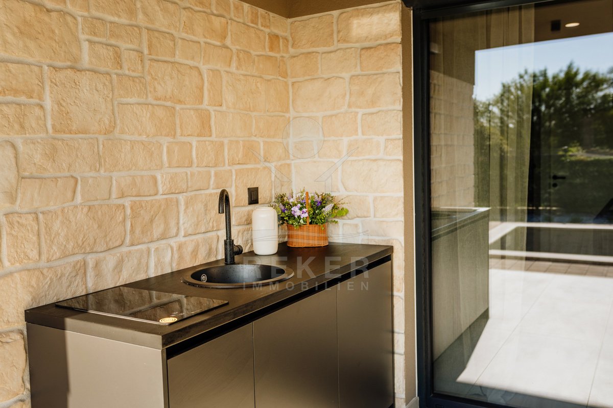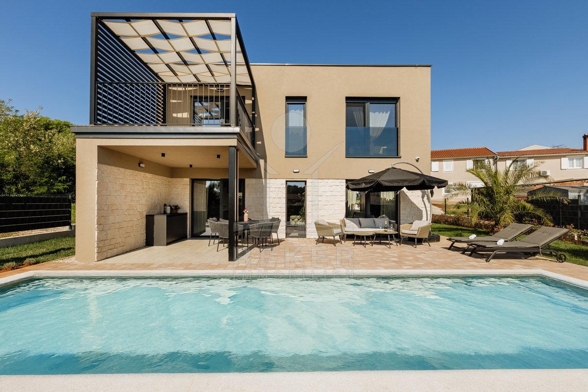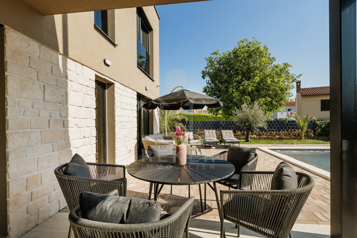 Mitten in einen charmanten Ort nahe Poreč, steht diese moderne Villa auf einem 540 m² großen Grundstück. Alles, was Sie für den Alltag brauchen, liegt direkt vor der Haustür: Restaurants, Cafés, Supermarkt, Post und vieles mehr. Und das Meer? Nur 3 Kilometer entfernt. Auch der Parkplatz befindet sich direkt auf dem eigenen Grundstück.