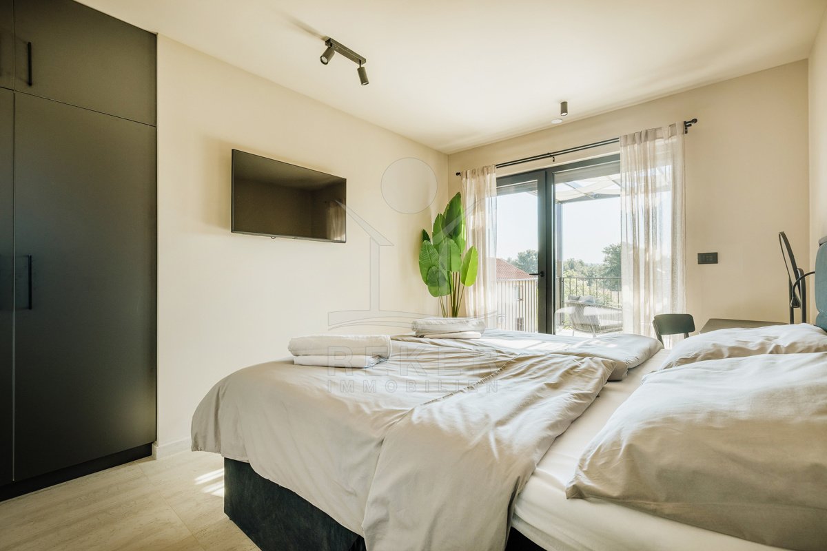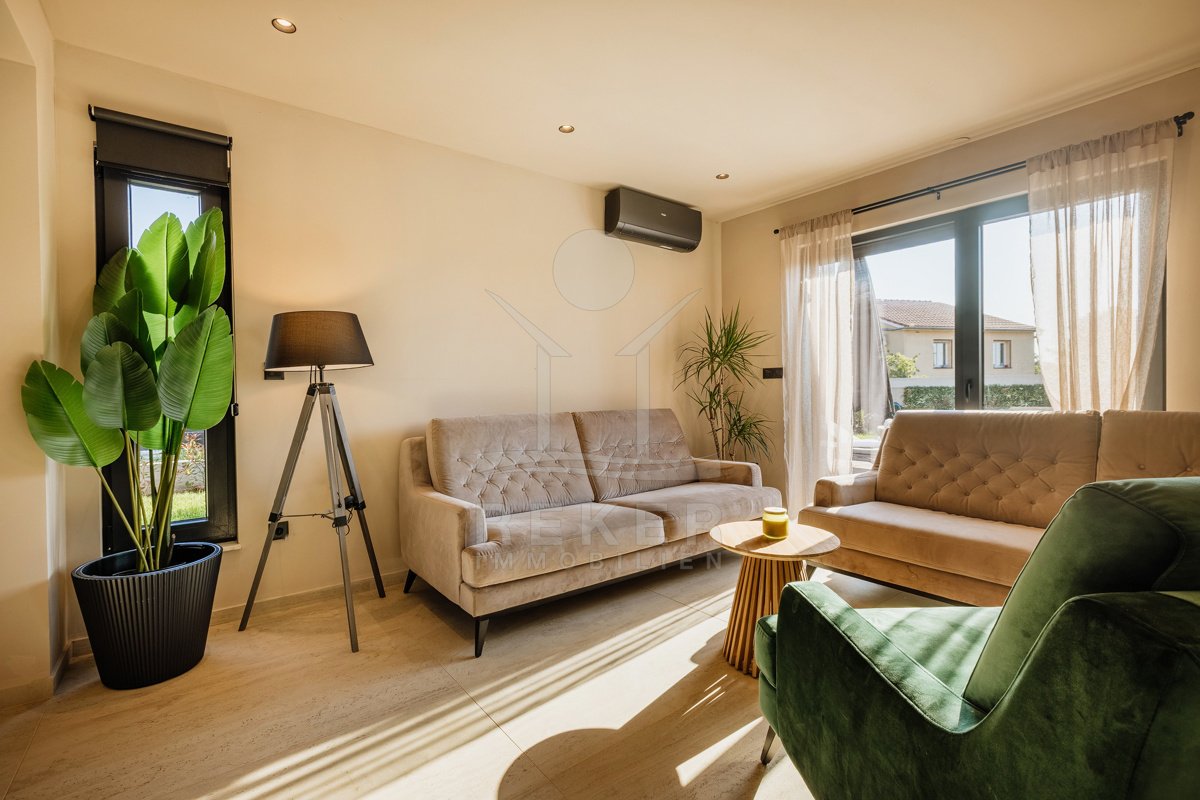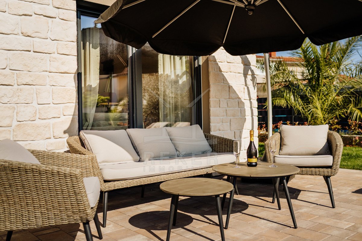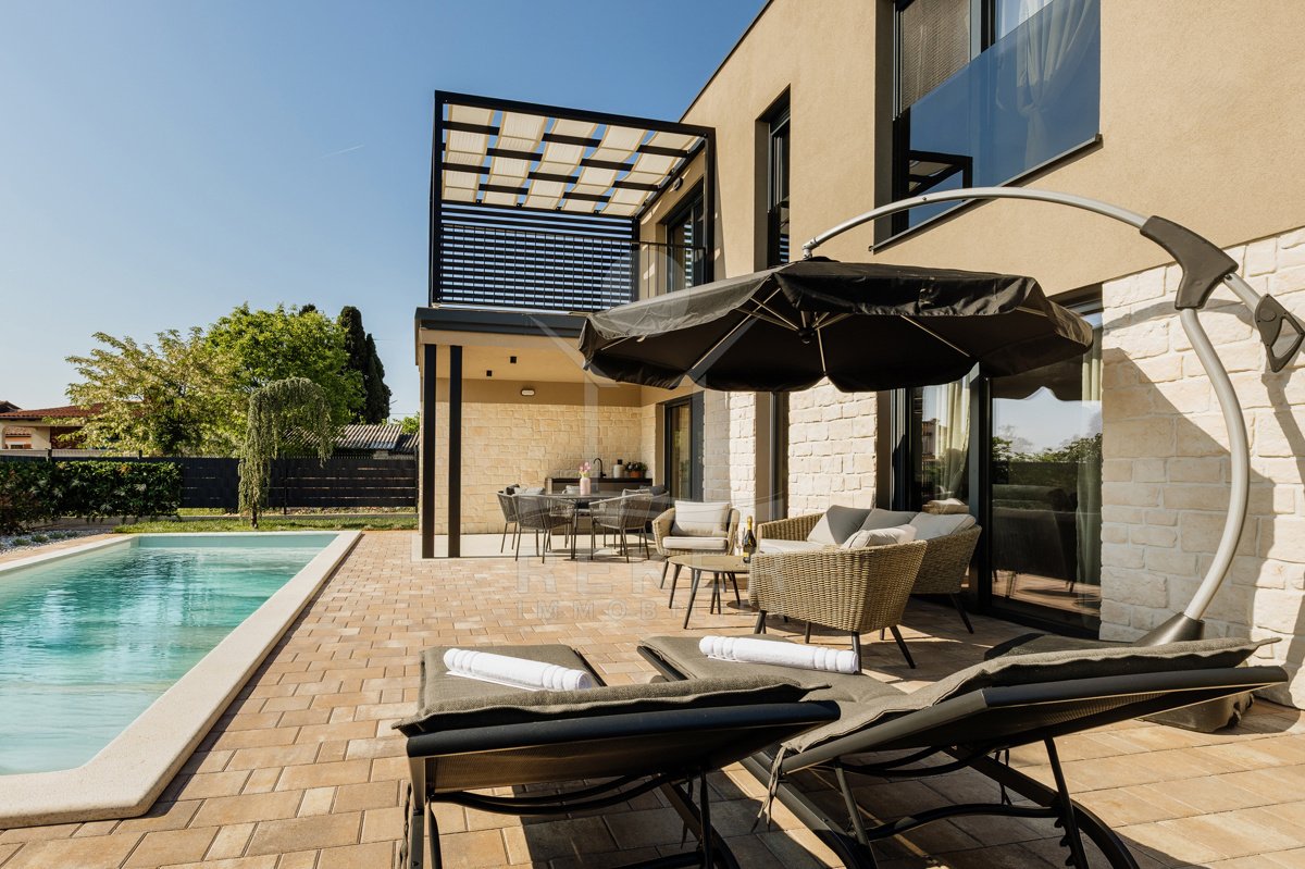 Mitten in einen charmanten Ort nahe Poreč, steht diese moderne Villa auf einem 540 m² großen Grundstück. Alles, was Sie für den Alltag brauchen, liegt direkt vor der Haustür: Restaurants, Cafés, Supermarkt, Post und vieles mehr. Und das Meer? Nur 3 Kilometer entfernt. Auch der Parkplatz befindet sich direkt auf dem eigenen Grundstück.