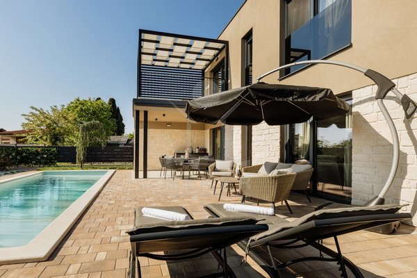 Design trifft Dolce Vita: Diese bezugsfertige Villa bietet mehr als Lage und Stil. Ein Outdoor-Paradies mit Pool und Lounge, nur Minuten vom Meer – innen edel möbliert, außen von Palmen eingerahmt. Willkommen in Ihrem Istrien-Alltag.