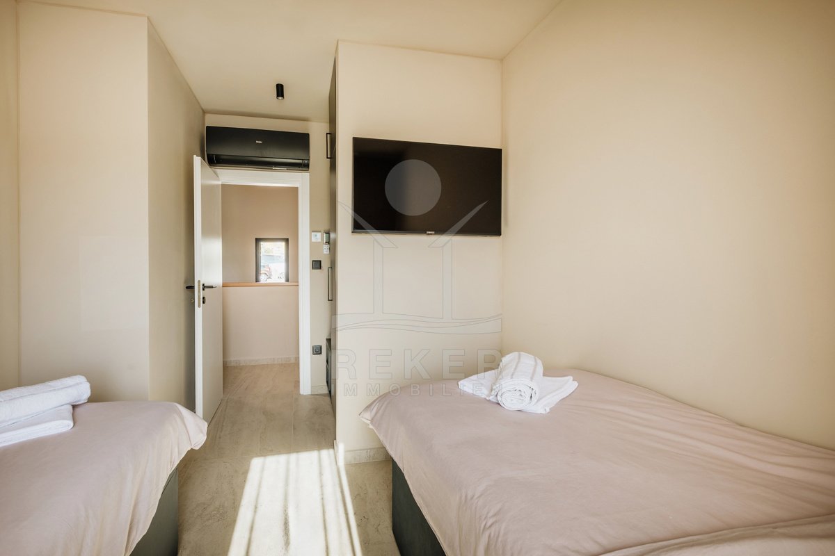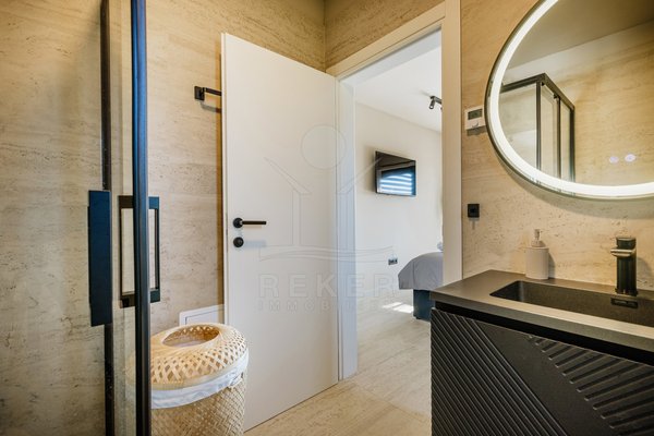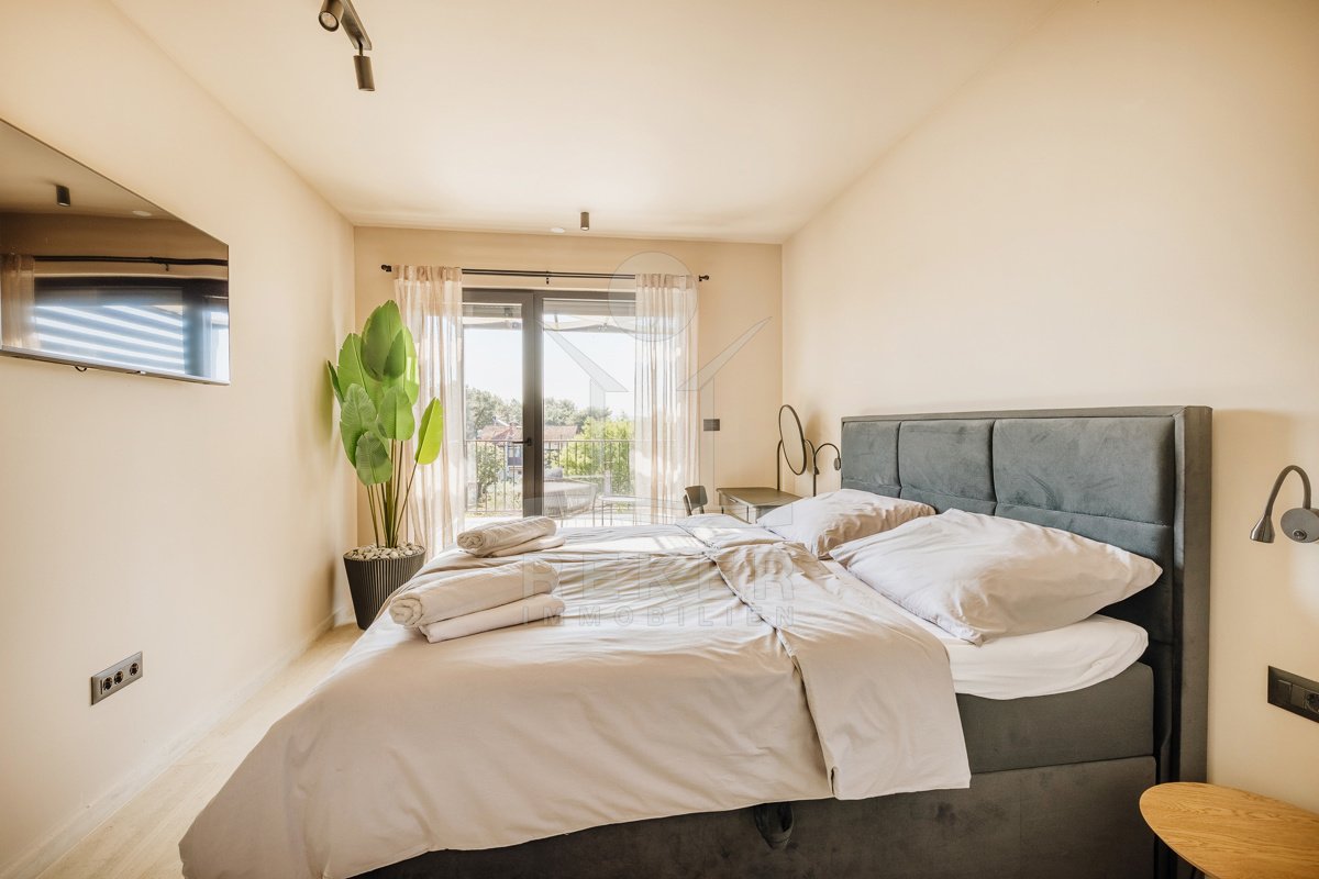 Mitten in einen charmanten Ort nahe Poreč, steht diese moderne Villa auf einem 540 m² großen Grundstück. Alles, was Sie für den Alltag brauchen, liegt direkt vor der Haustür: Restaurants, Cafés, Supermarkt, Post und vieles mehr. Und das Meer? Nur 3