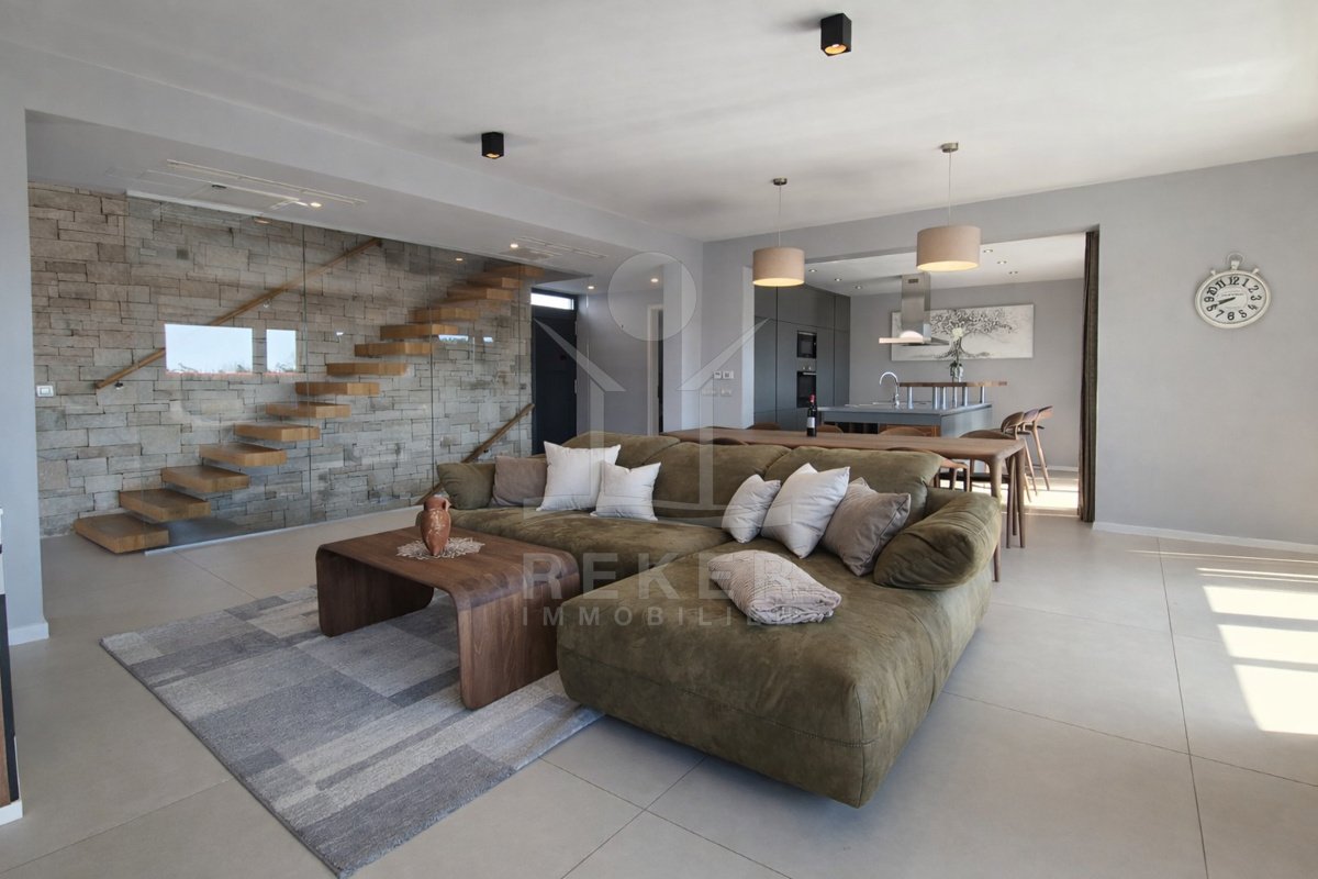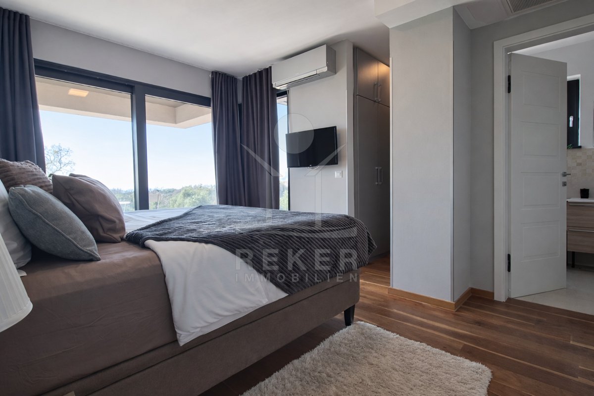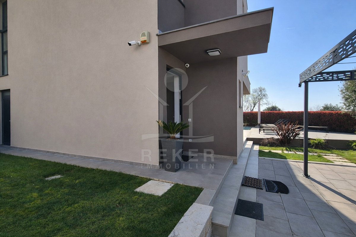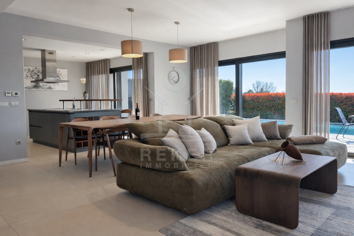 Erleben Sie luxuriöses Wohnen in dieser exquisiten Villa in Poreč, die modernes Design und hochwertige Ausstattung perfekt vereint. Mit einem einladenden Pool und einem erstklassigen Spa-Bereich werden Wellness und Erholung hier großgeschrieben. Die
